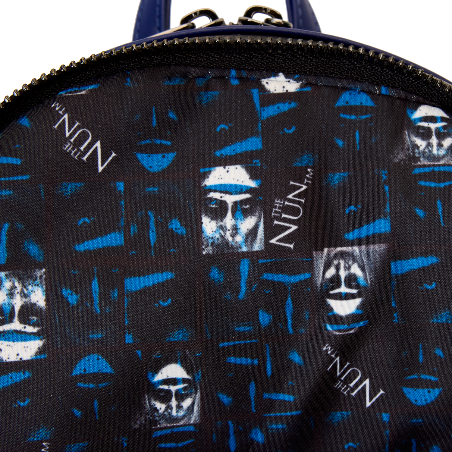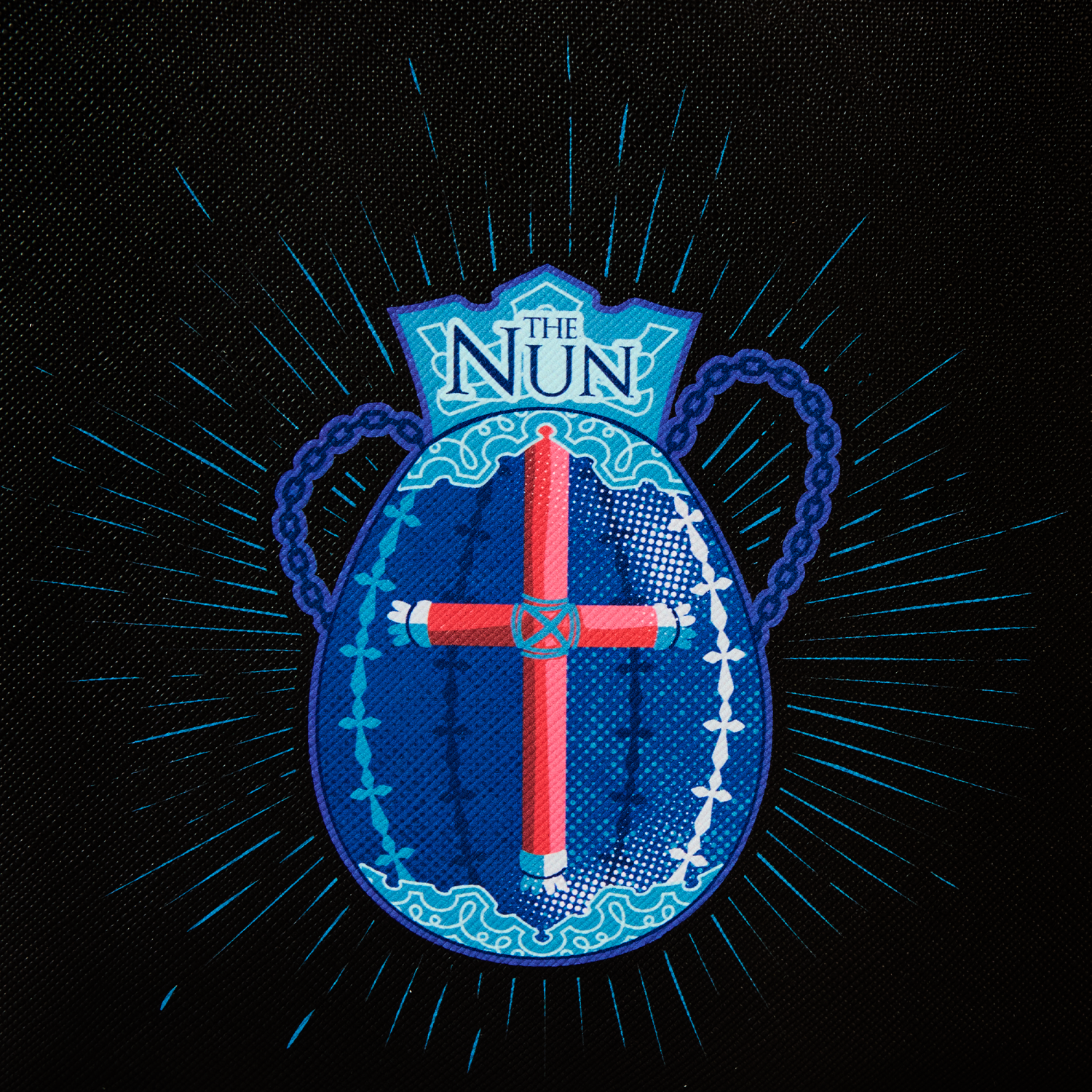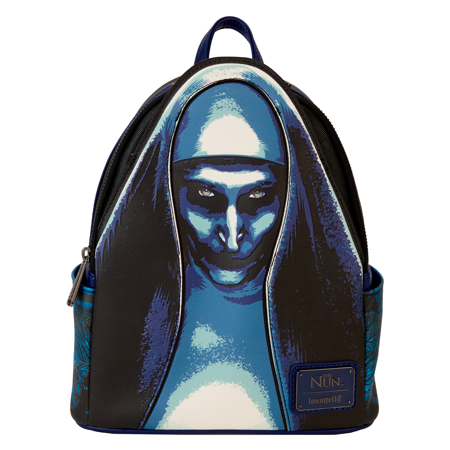 Venture through candlelit stone passageways and fog-covered haunts in style. This backpack, featuring The Nun, is truly a vision. Eerie printed details of an apparition of The Nun materialize on the front. In the dark, parts of her face and habit glow! She also has a piercing gaze, as her eyes light up in the dark. On the side pockets, you’ll find original, detailed artwork of the monastery in moonlight, shrouded by trees. Turn the backpack around, and you’ll spot a print of the ancient relic with the red cross inside. Pack your daily essentials for a fashionably spirited adventure.