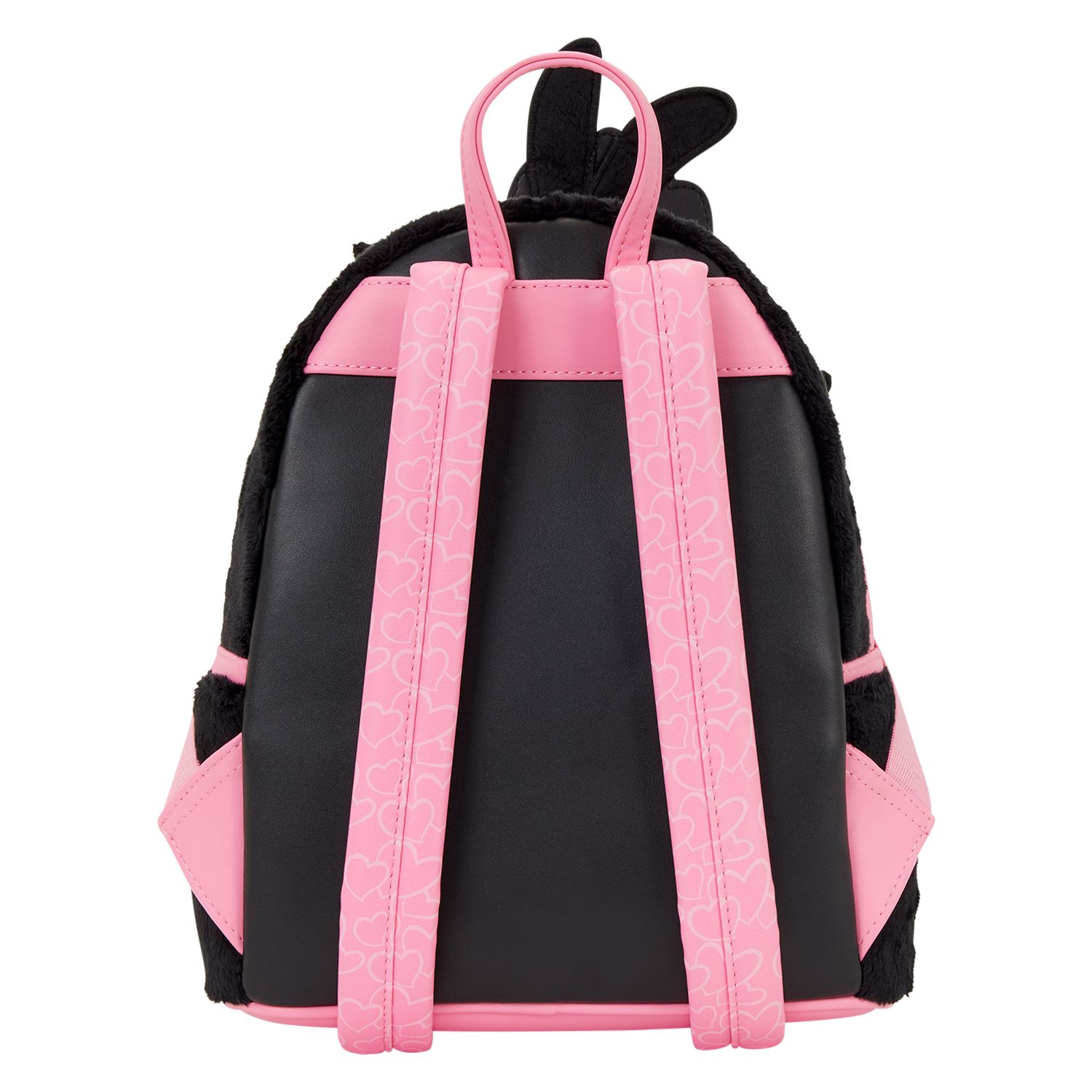 This mini backpack features Dot from Animaniacs! She appears in applique detail on the front of the bag with her hands clasped together on the front pocket. You'll find embroidered facial details, and more embroidery on her flower hair tie. The rest of the bag is plush!