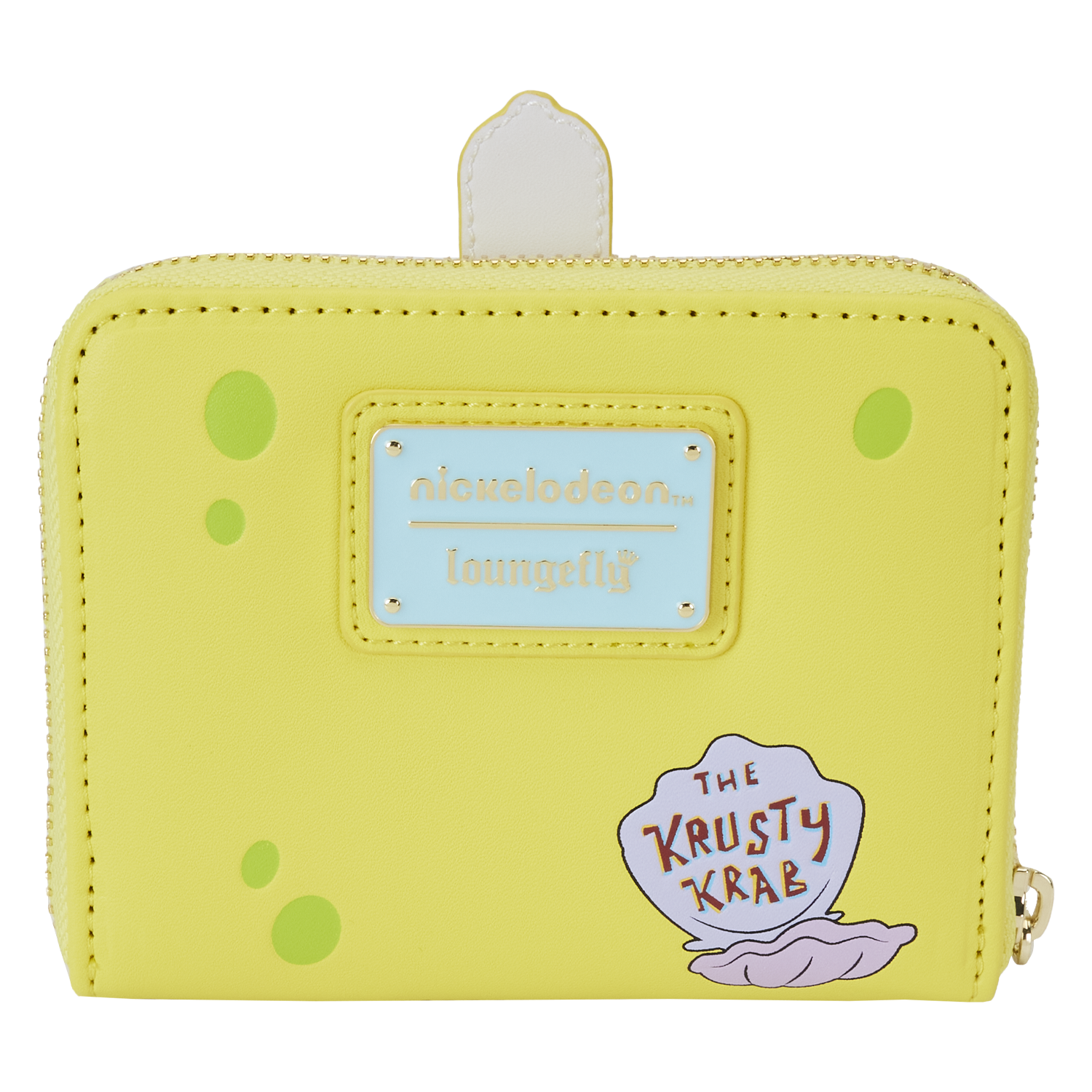 Welcome to the Krusty Krab! The Loungefly SpongeBob 25th Anniversary Zip Around Wallet takes the shape of the beloved underwater fry cook. On the front, SpongeBob SquarePants wears his signature uniform as embroidered details highlight his facial features below. Sponge circles continue onto the back, where the Krusty Krab’s clamshell sign makes an appearance. Open the wallet to reveal four slots for holding cards and a clear slot for ID. Whether you’re clocking in for your next shift or having fun on your day off, this accessory will keep you ready for your next adventure.