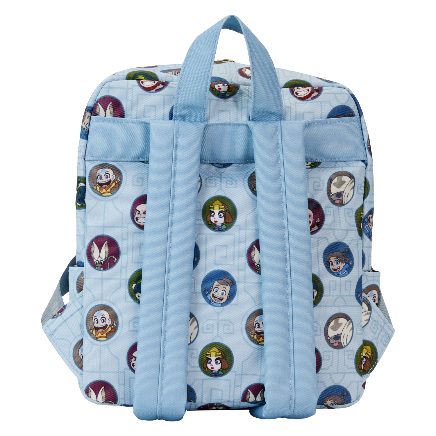 Remain in your element—and in fashion—with our Loungefly Nickelodeon Avatar: The Last Airbender All-Over-Print Square Mini Backpack. This sturdy and handy mini backpack features an elemental motif that connects cute images of the faces of fan-favorite characters, including Aang, Appa, Zuko, Toph, Momo, and more! A front pocket allows you to secure smaller items on your journeys, and padded soft blue straps add comfort and convenience.