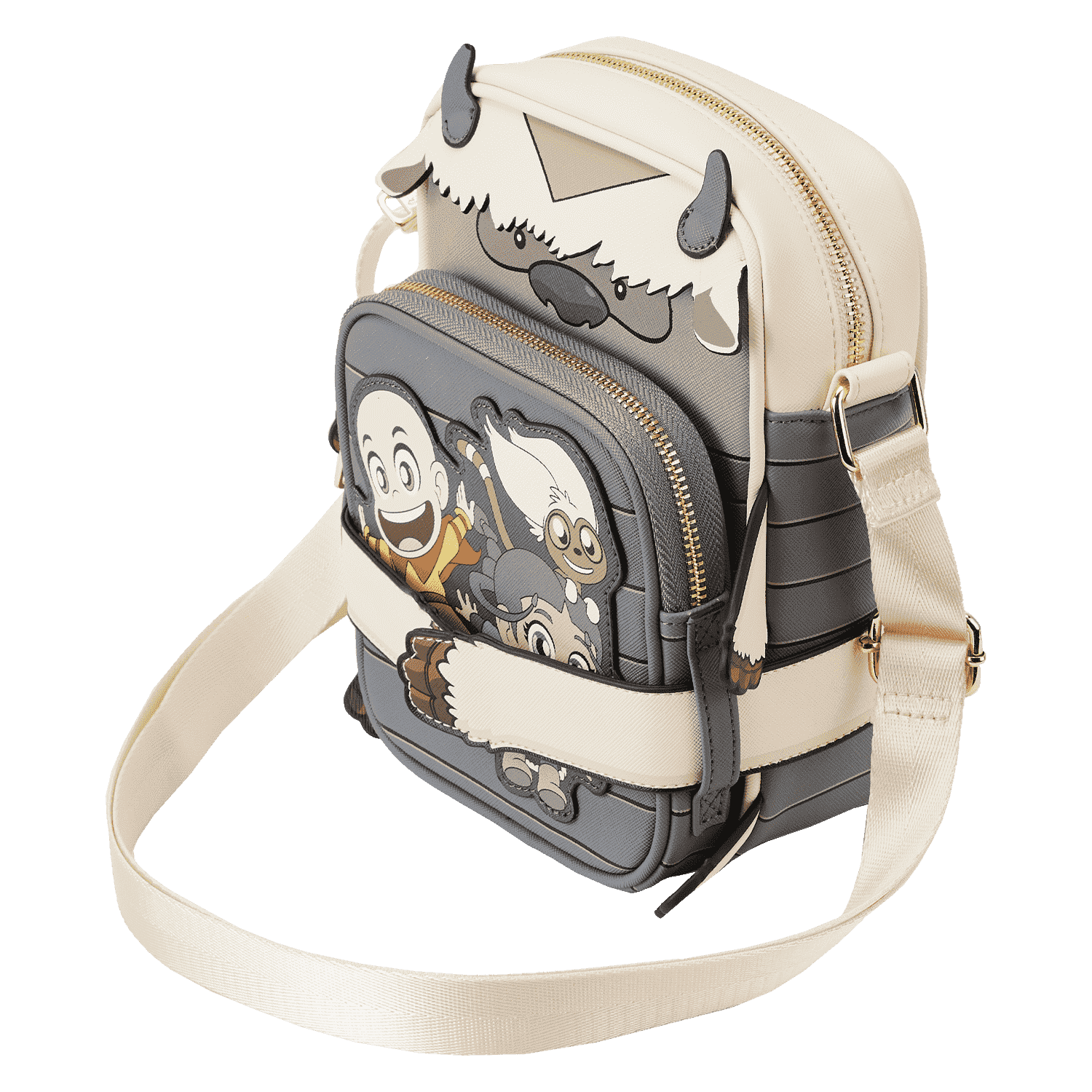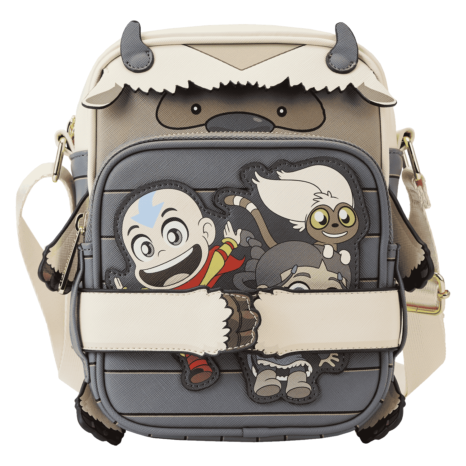 Choose your companion well, for this bond will last a lifetime! The Loungefly Avatar: The Last Airbender Appa CROSSBUDDIES™ Bag is ready to accompany you on your next adventure. Giving shape to Aang’s sky bison, the front of this crossbody bag shows Appa’s cuddly face as he carries Aang, Katara, and Momo. Unbuckle his arms to reveal Toph and Sokka on the other side of the reversible coin pouch! The back of the bag shows Appa’s tail and signature markings. A loyal counterpart to any outfit, this high-flying accessory will keep your belongings safe as you travel the four nations.