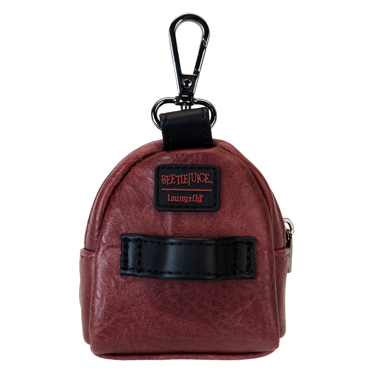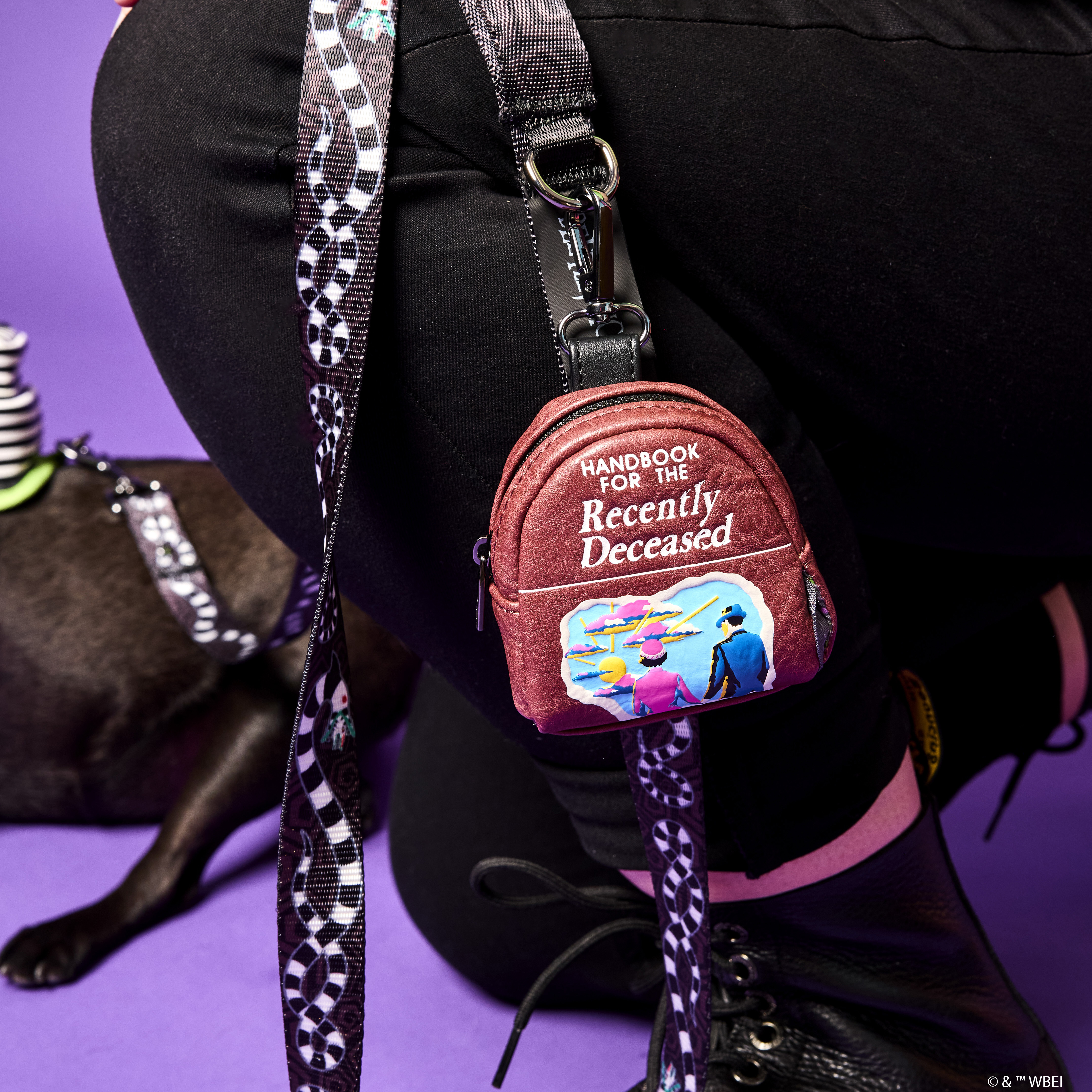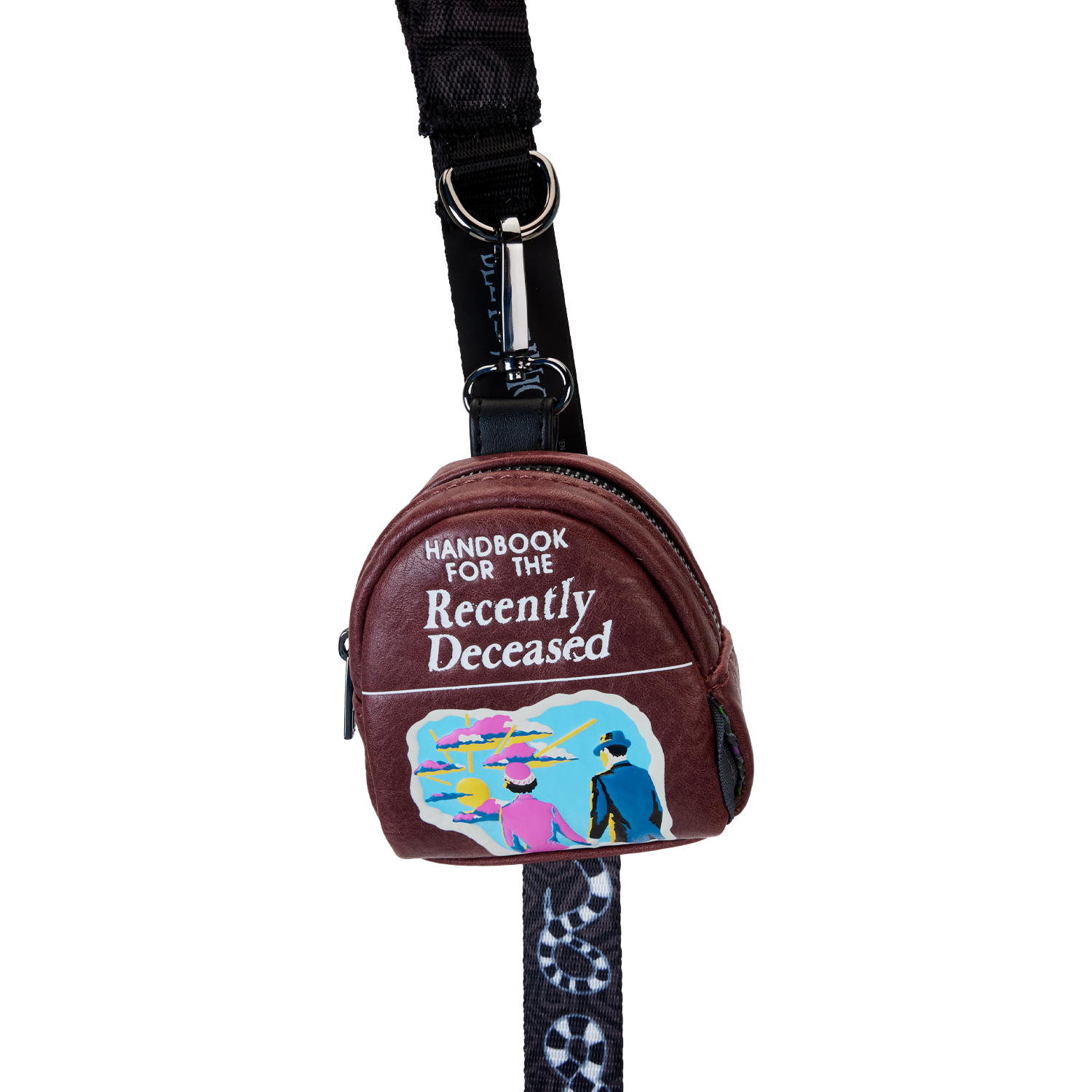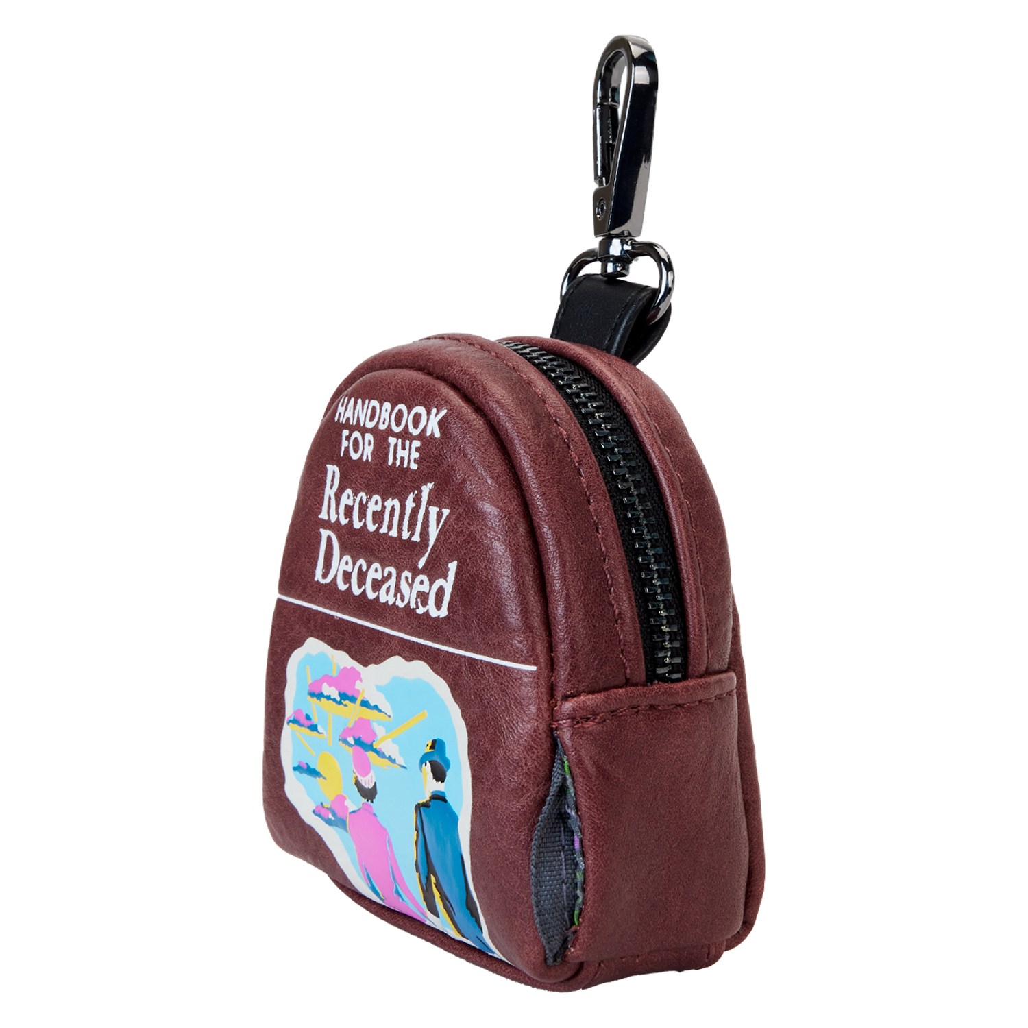 Book a trip for a spirited good time at the park! Our Beetlejuice: Handbook for the Recently Deceased Treat Bag is ready for adventures. This treat bag resembles the book from the movie, with “weathered” faux leather details and a replication of the front cover art. White lettering states the title of the book, and just below, a printed image reveals a couple, holding hands, ready to embark on a journey into the afterlife. Pack treats and other necessities in the zippered compartment and step out in style with a must-possess accessory.