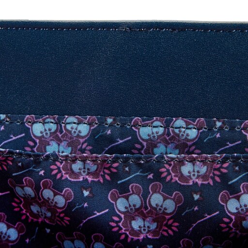 The Loungefly Brave Princess Merida Castle Crossbody Bag Crossbody Bag is made of vegan leather (polyurethane). Bag has a chain and adjustable faux leather shoulder strap (detachable). Additional features include the following details: sturdy metal hardware, faux leather charm, foil, applique, and printed details. Notice the touching reunion scene with Merida’s mother in bear-form printed on the inside of the purse flap, along with the coordinating inside lining.