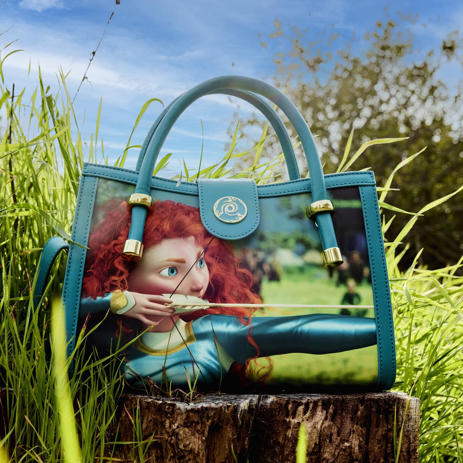Take fate into your own hands. The Loungefly Brave Merida Princess Scene Crossbody Bag features unique scenes from Disney-Pixar’s animated feature displayed across each panel of the bag. Turn the bag around and you will find inspiring moments from Merida’s journey, including her archery triumph and transformative moments with her family. A molded metal rivet of Merida’s pendant secures the front and back of the bag. This spellbound accessory will keep your belongings safe on any journey and is perfect for fans looking to keep one of their favorite movies close.