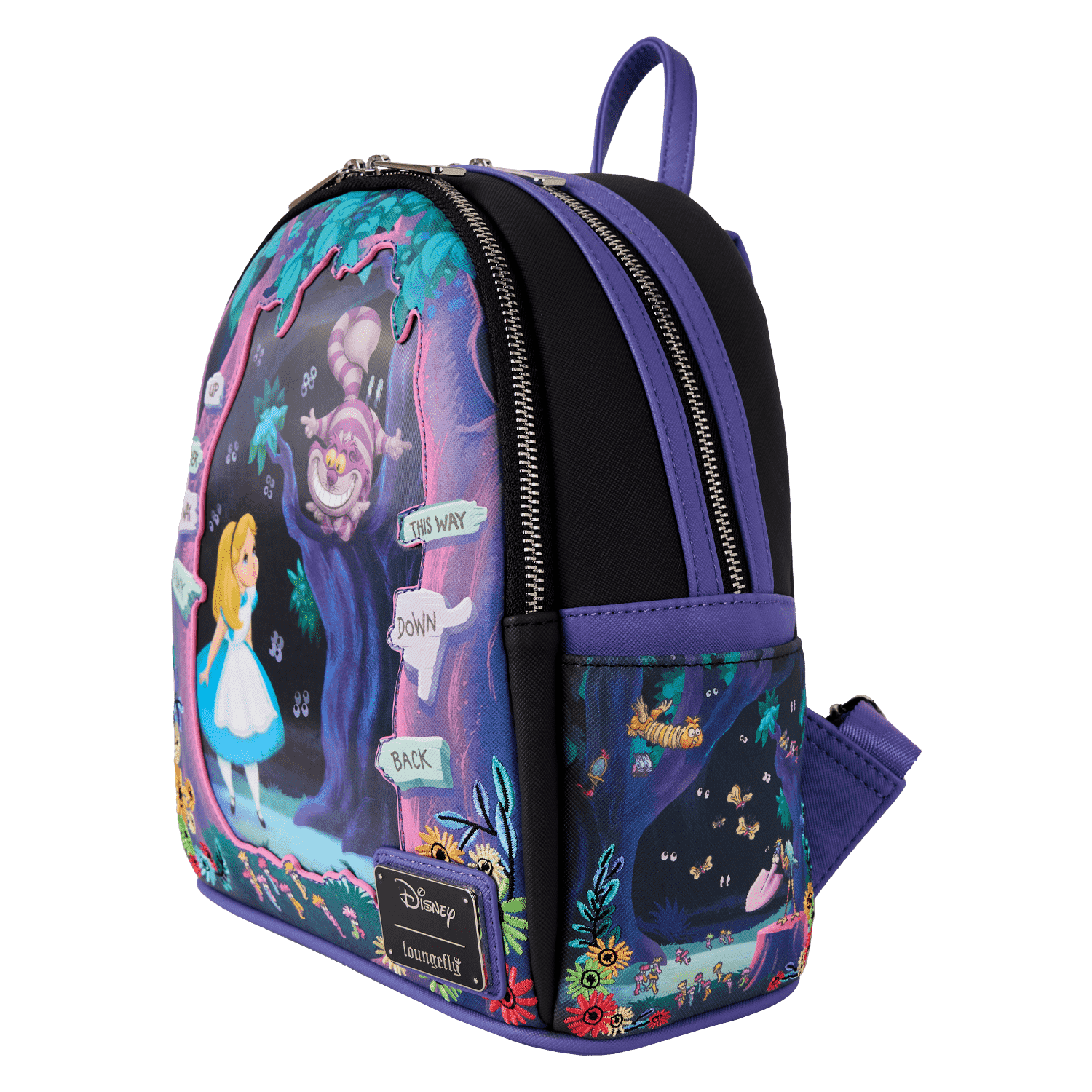 Fall down the rabbit hole of style with this mini backpack! Alice tries to make her way through Wonderland on the front of this bag.