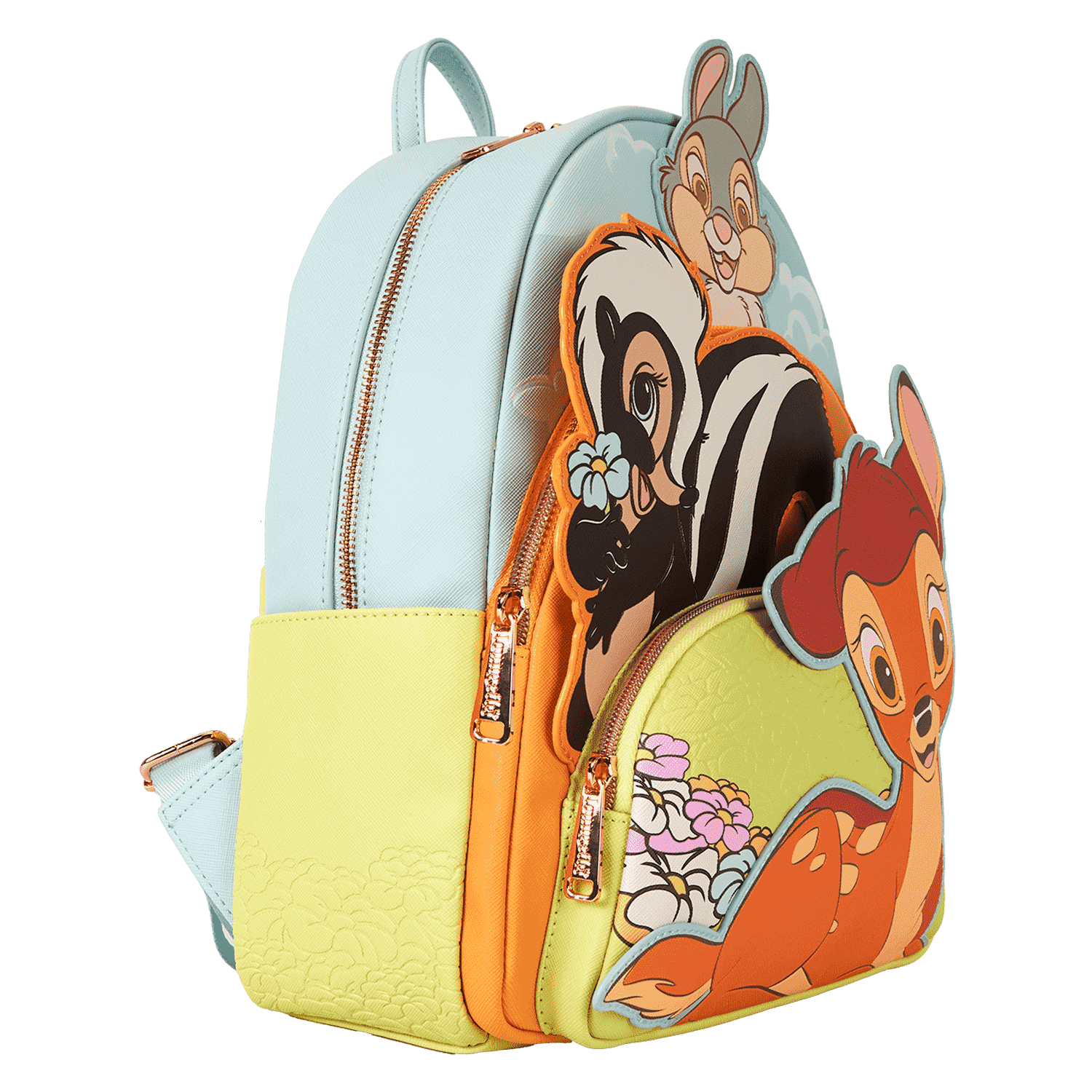 As seasons change, friendship blooms! Step into the wonder of spring with Disney’s Bambi, Flower, and Thumper as they appear on this darling mini backpack. With plenty of zipper pockets to hold your discoveries, this accessory makes the perfect choice for exploring the world around you.