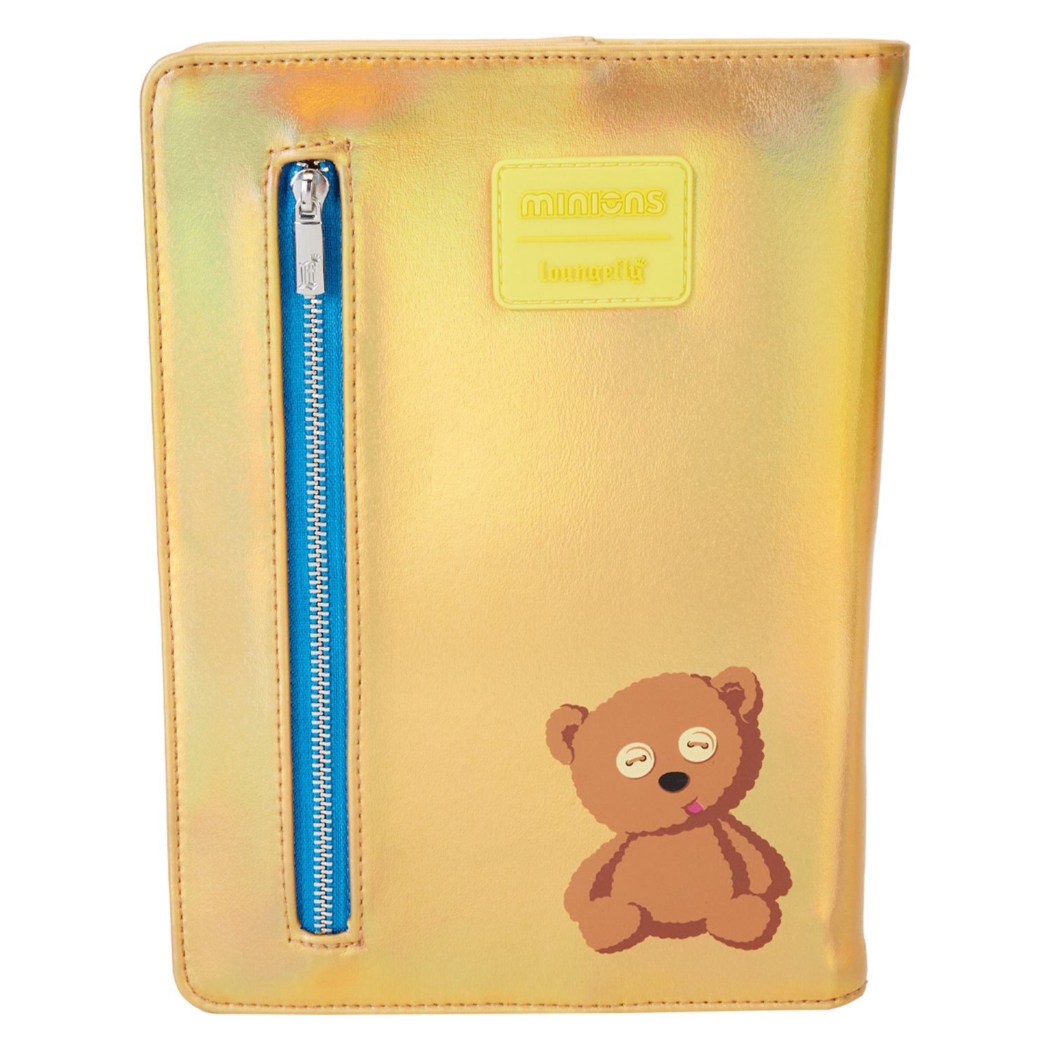 Write an ode to your favorite Minions—and bananas! Express yourself with this unique journal. The front cover features Bob the Minion in shiny gold and blue iridescent details. His applique glasses are framed in silver vegan leather, and clear PVC material creates see-through “lenses.” A front “pocket” displays the “Gru” symbol in blue. On the back, you’ll find Bob’s favorite teddy bear. There’s also a zipper compartment where you can store sticky notes, a pen, or other items you might need when inspiration hits. When you open the cover, you’ll find 150 sheets of paper with prints of Minions, who are up to their antics—and a few bananas as well. Record all the good-natured mischievous moments you encounter on your journeys, in style.