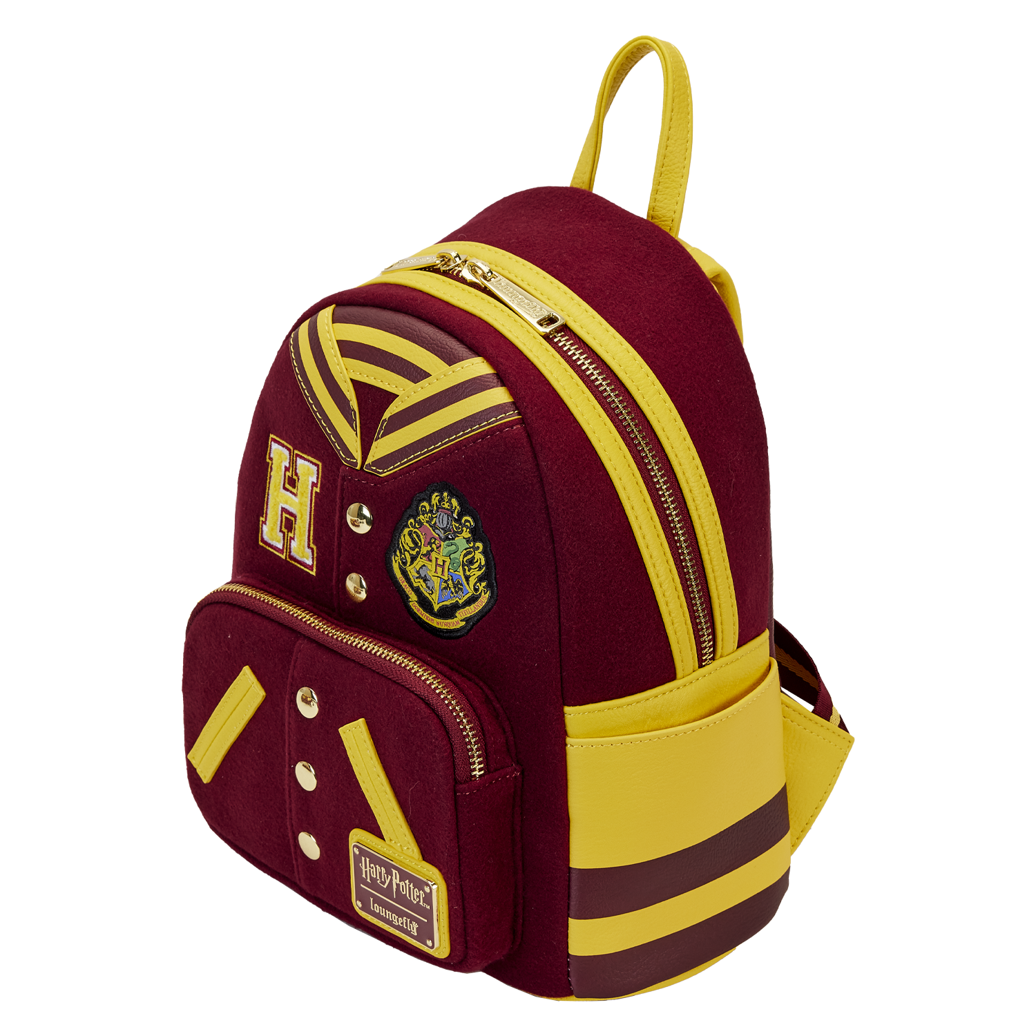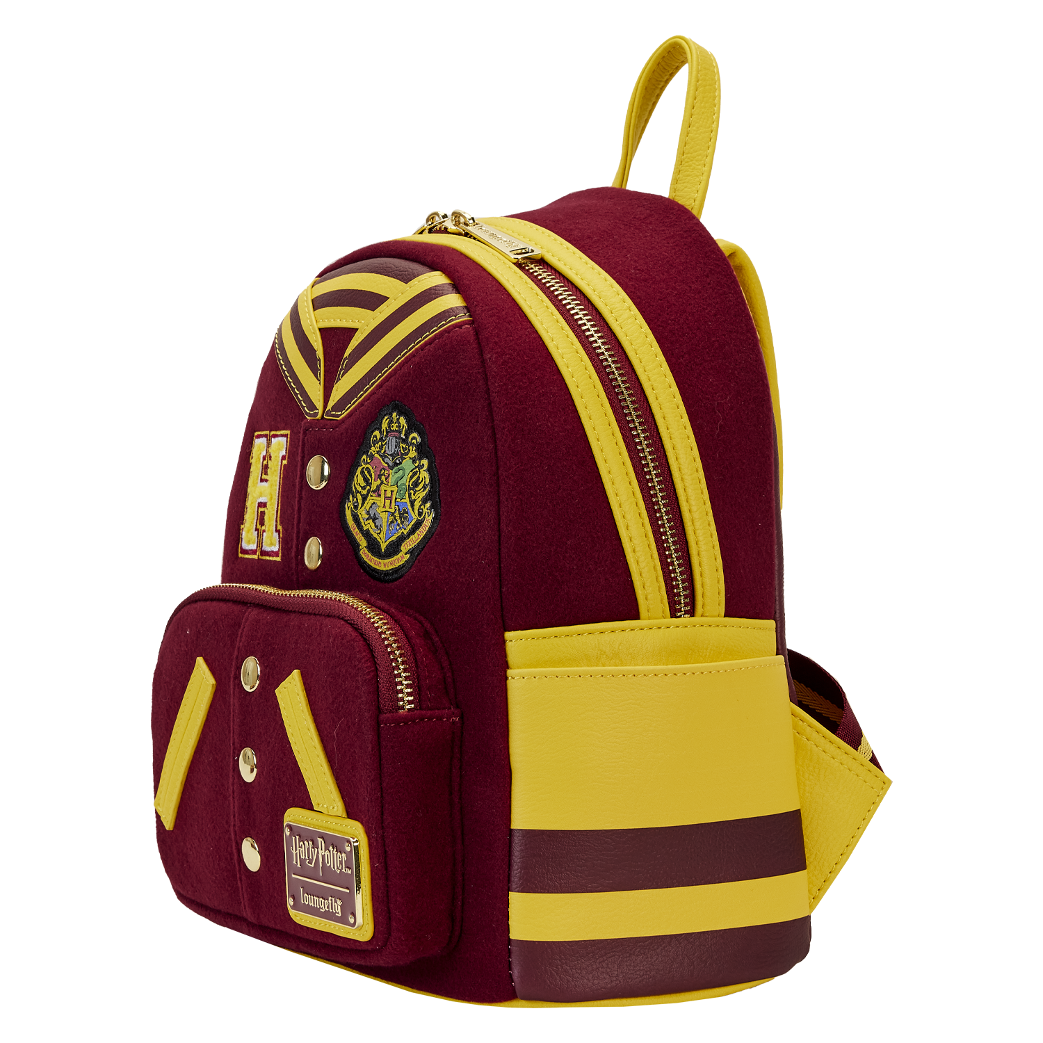 It’s time to show your house pride Hogwarts alumni! The Loungefly Harry Potter Gryffindor Varsity Mini Backpack will keep your necessities secure and represent your wizarding house and school of choice. Made with wool, this backpack replicates the classic varsity jacket style complete with a striped collar (made of vegan leather), chenille patch, Hogwarts Crest, and “Hogwarts” written across the back. This design truly embodies the “boldness” of Gryffindor with gold accents to the maroon base color. It’s a great accessory to complete a casual fandom outfit or dress up for your post-graduation cosplay.