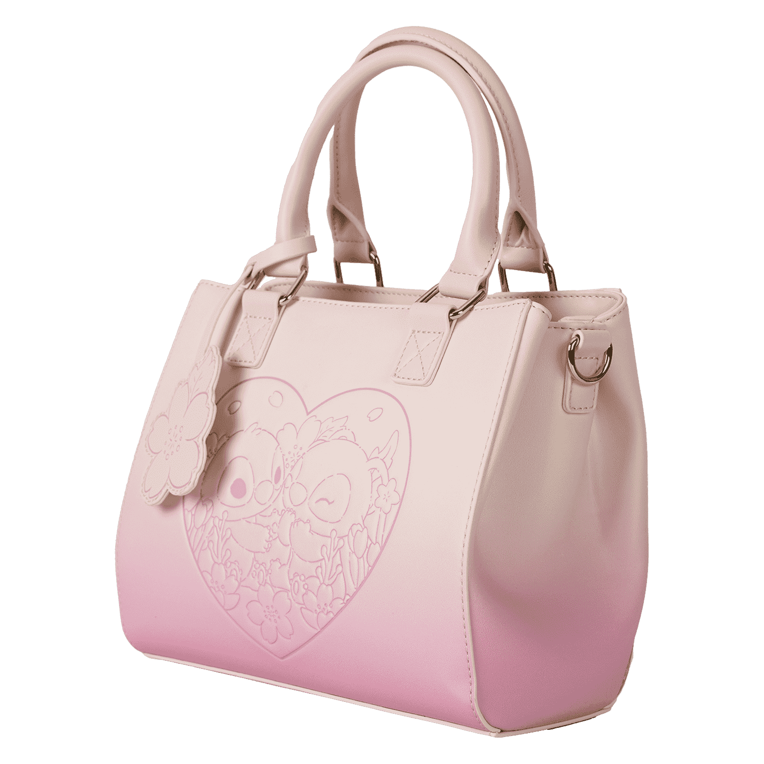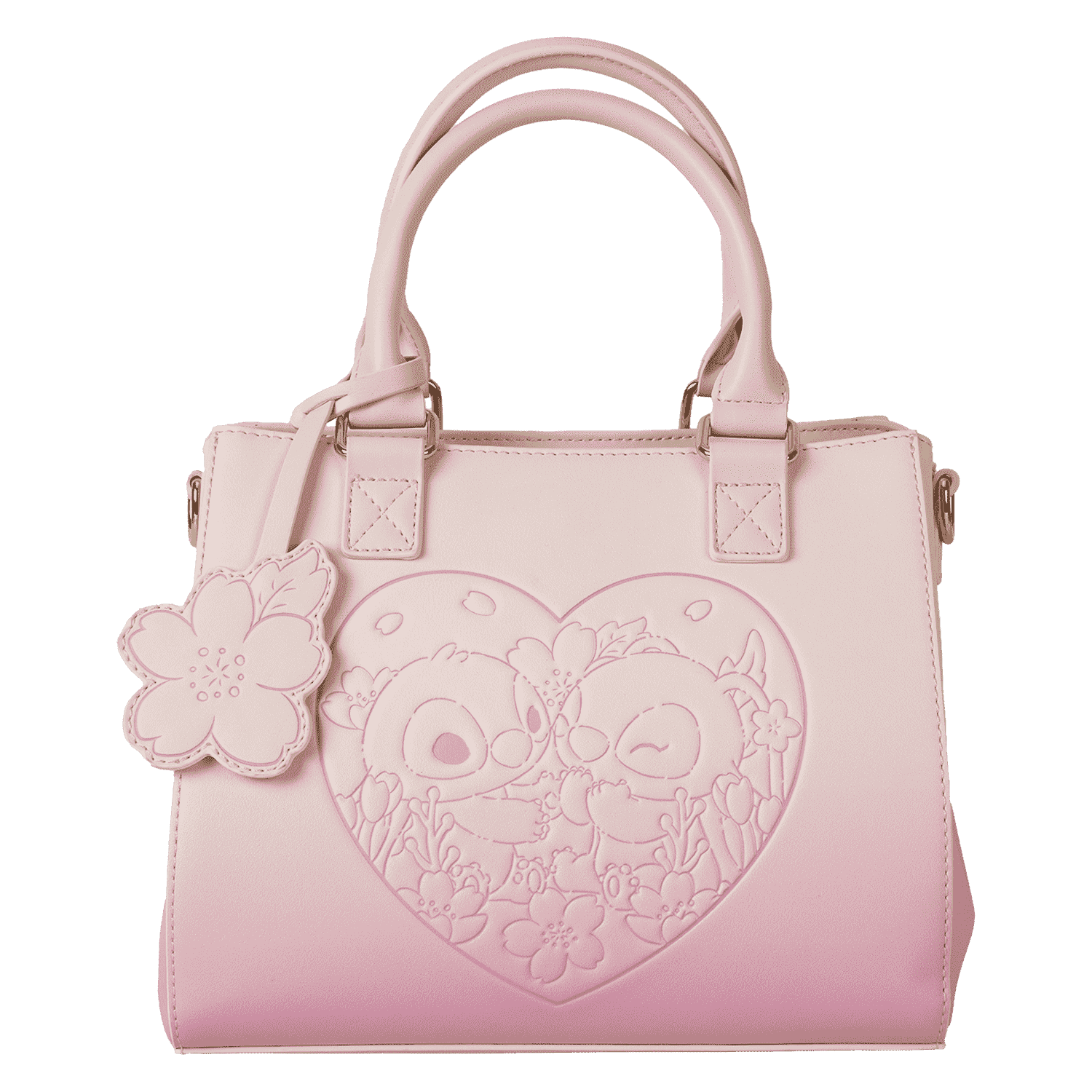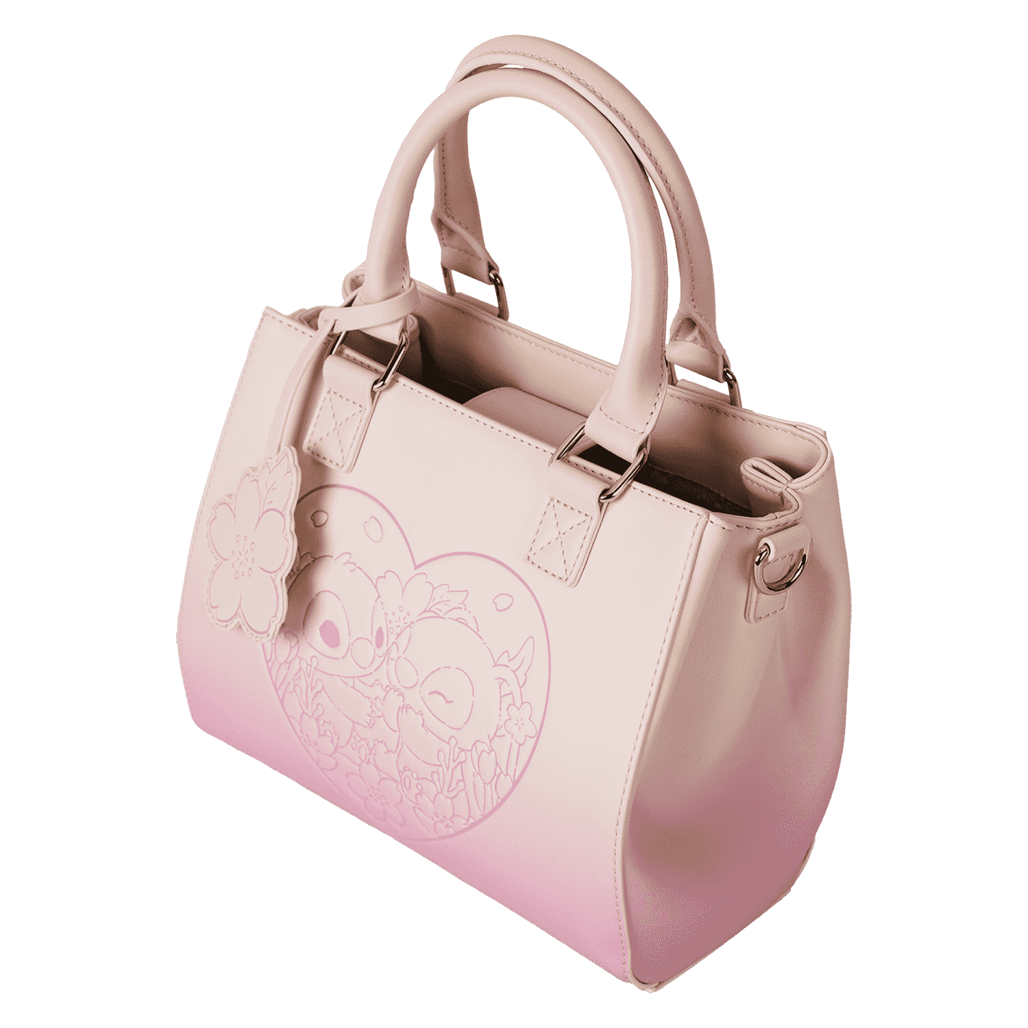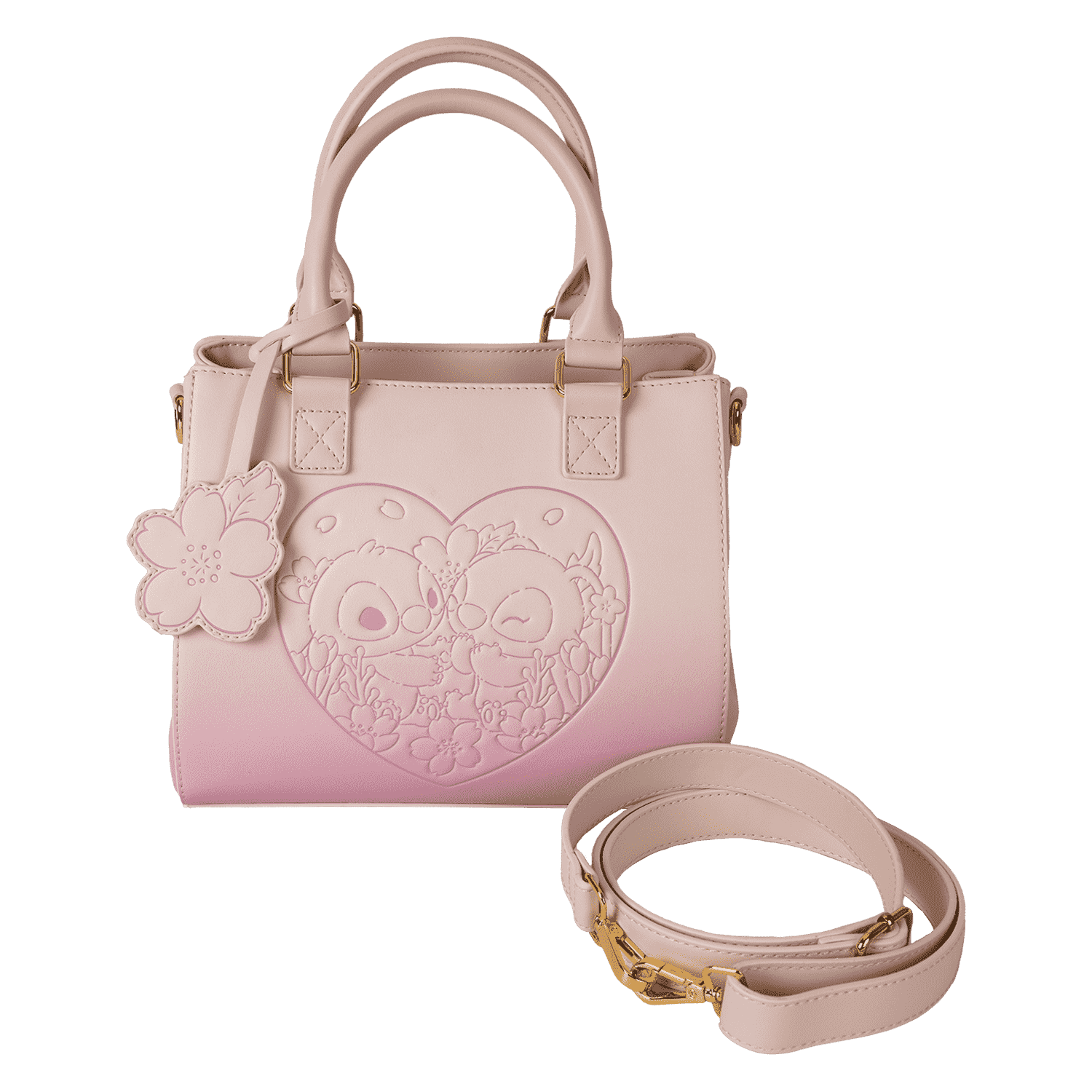 Keep your best boojiboos forever (BBFs) close with a fashionable flair. Take along this Disney’s Stitch and Angel crossbody bag. This accessory shimmers in shades of soft pink. The front features an embossed heart that frames a charming moment between Stitch and Angel, unfolding among the flowers. A cherry blossom vegan leather charm tops off the look. There’s enough room for packing just what you need for a fun-filled day of sweet adventures.