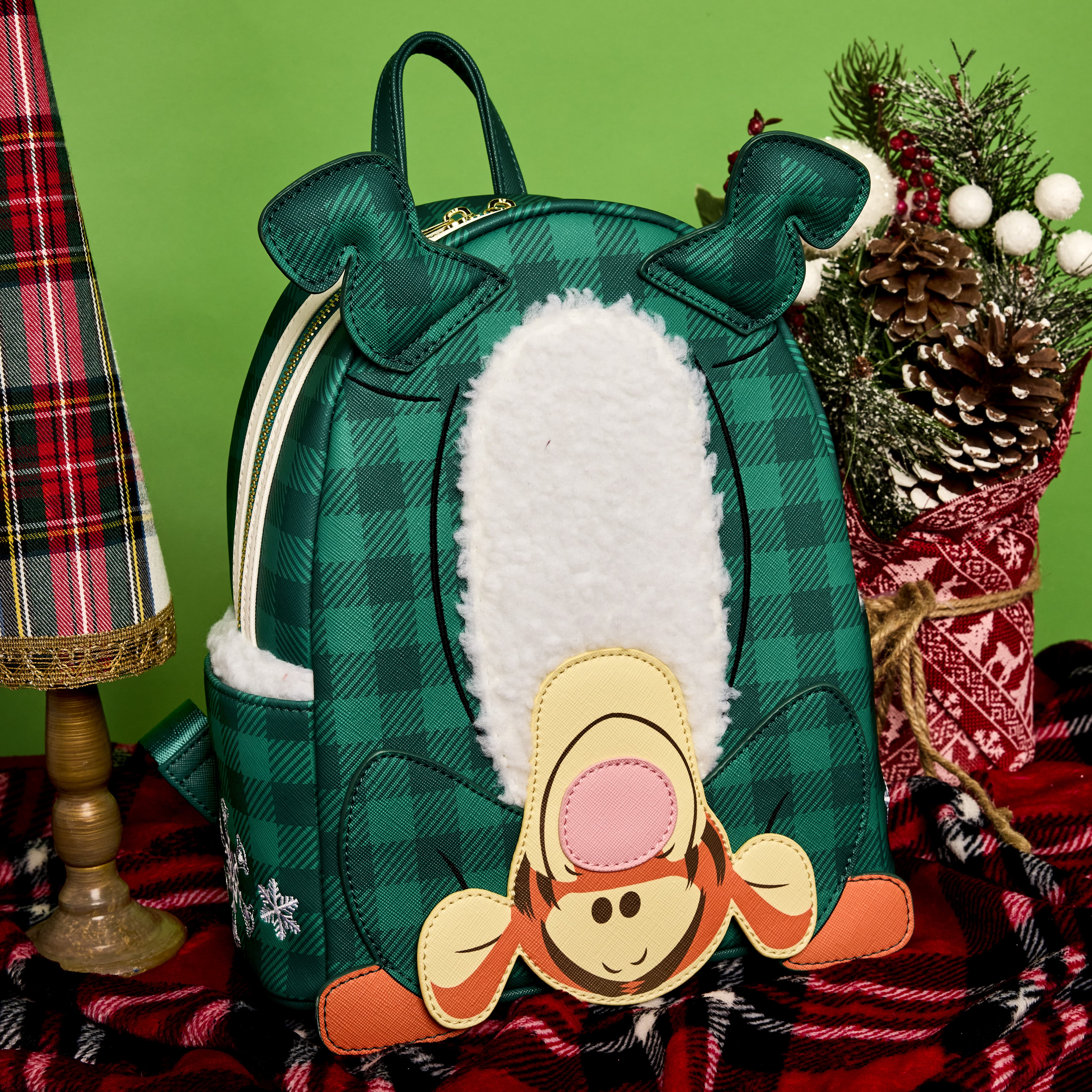 Joyful and plaid! Disney’s Tigger has flipped upside down to help you send warm holiday wishes. Our festive backpack features Tigger in green plaid pajamas. An applique of Tigger’s head appears at the bottom, and his padded applique feet stick up on top. Fuzzy white sherpa material down the middle adds a soft touch. Flip the backpack around, and you’ll find an applique print of a button flap and Tigger’s tail. Pack just what you need for the day to bounce into the holidays and spread good cheer wherever you go.