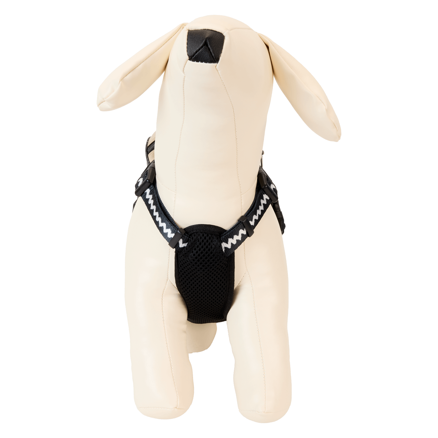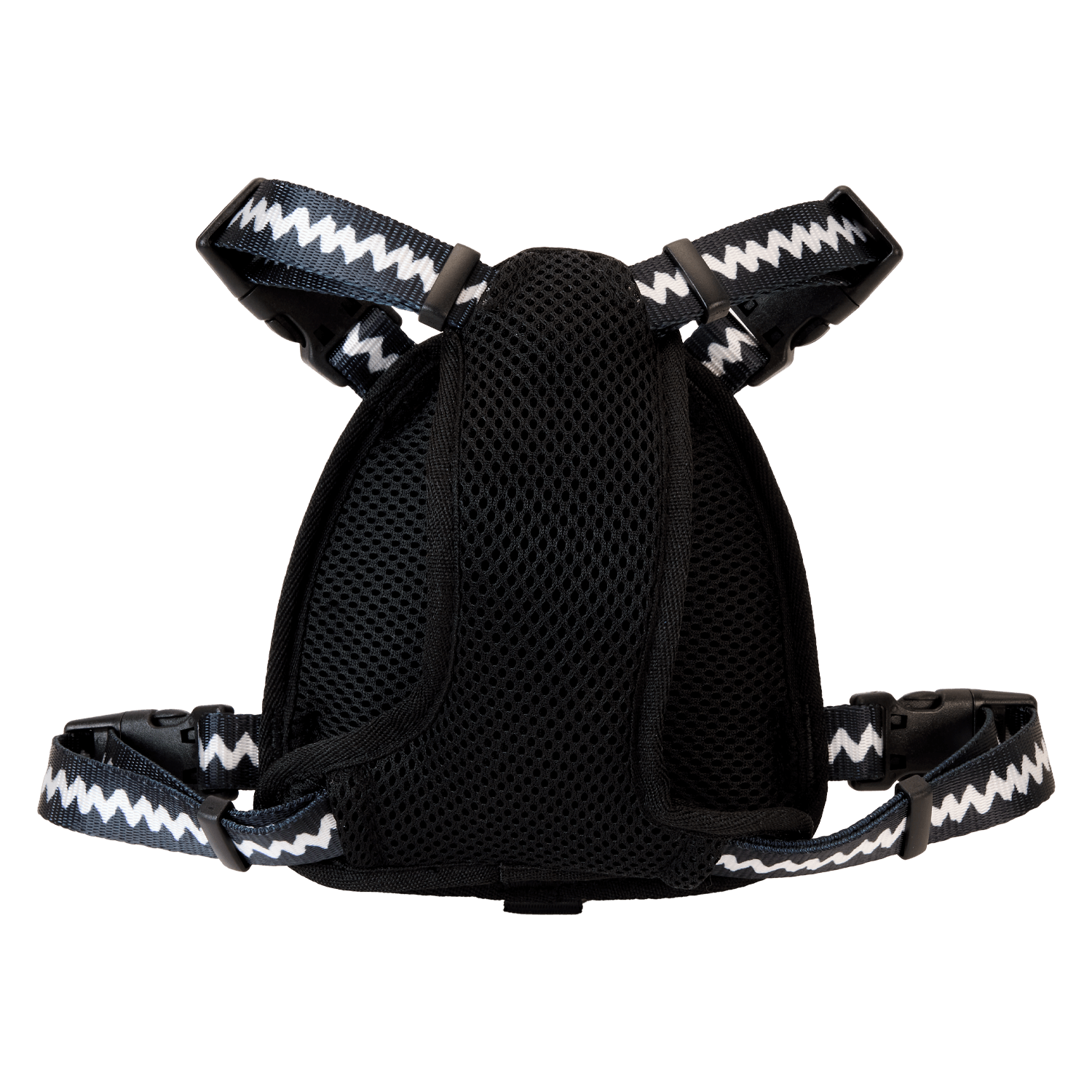 Happiness is…a big celebratory feeling you can take with you wherever you go. Celebrate the 75th anniversary of Peanuts™ with our pet harness featuring Snoopy and the whole gang. On the bottom of the harness, the Peanuts characters’ silhouettes are embroidered in white, against a black background. Snoopy appears above, doing his happy dance against a shiny gold, textured background. The straps even carry Charlie Brown’s signature wavy stripe on his shirt, and original comic-strip artwork decorates the sides and top. Store extra treats and necessities in the zippered compartment and get ready to celebrate a milestone anniversary with a little extra character.