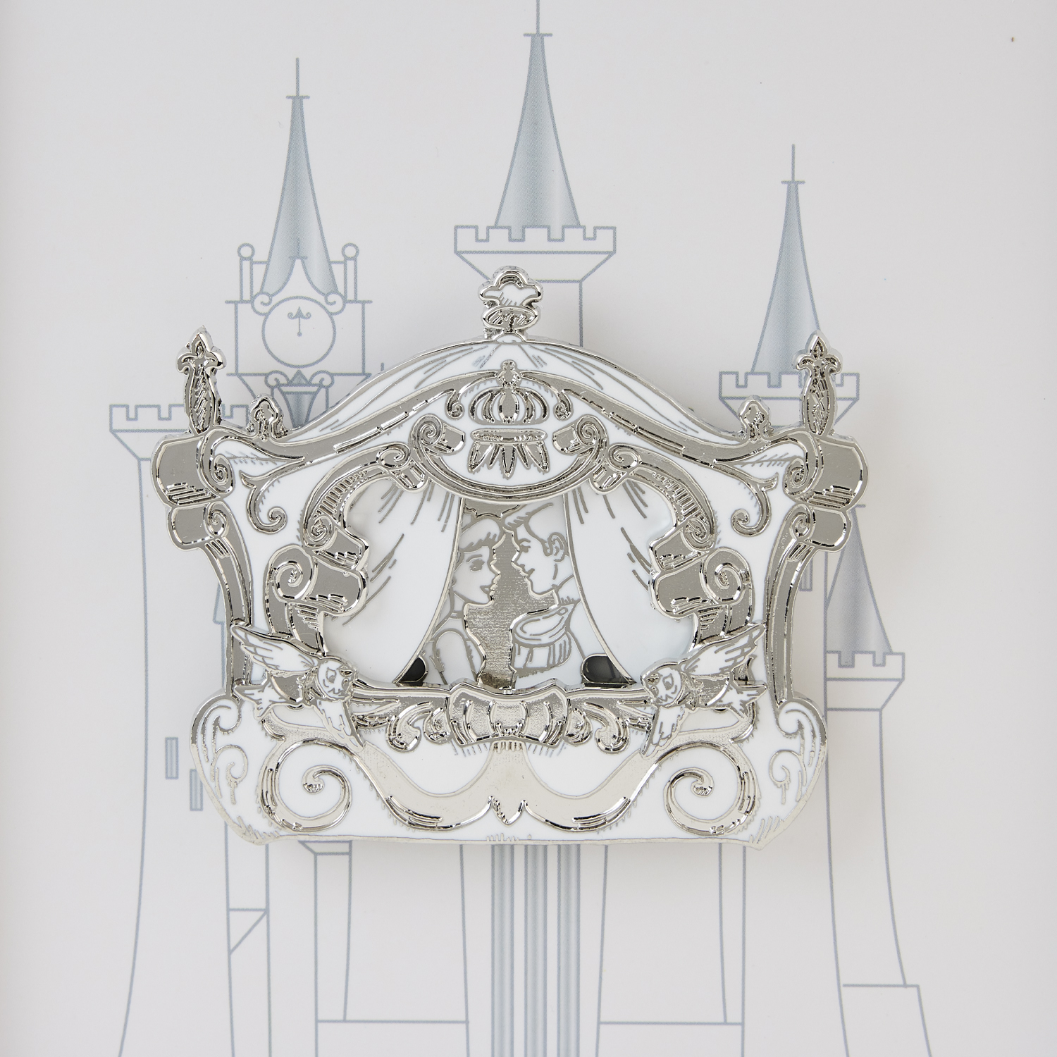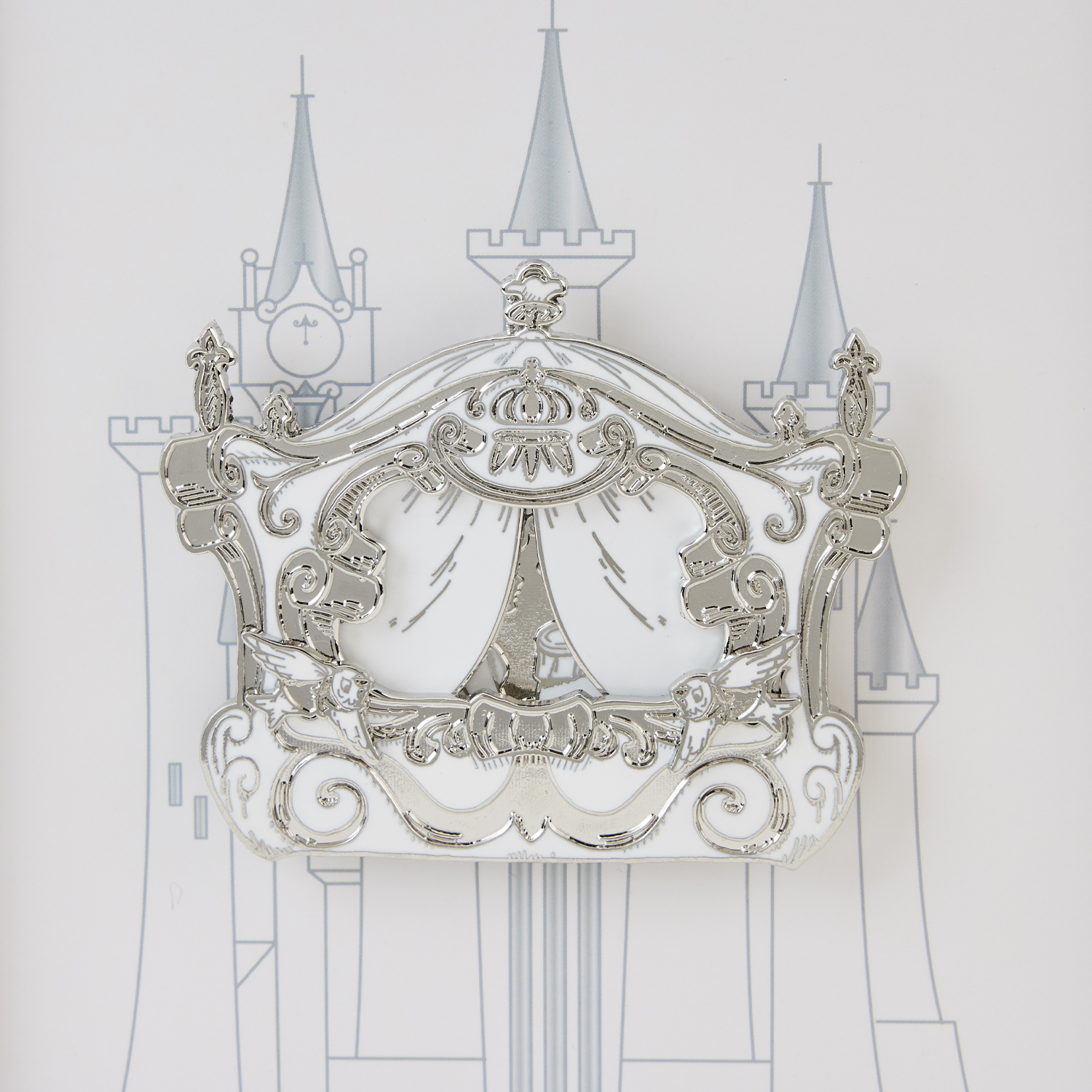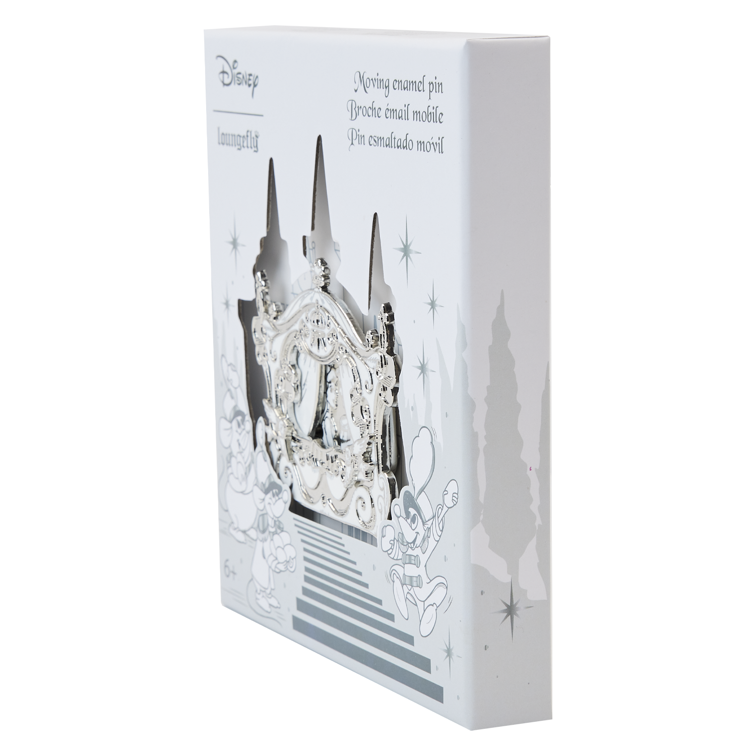 Your carriage awaits! Fairytale dreams do come true with our Loungefly Cinderella Happily Ever After 3-Inch Collector Box Pin. Get a close-up view of Cinderella and Prince Charming in their carriage, as they’re whisked away to a happy life. A sliding mechanism on the pin allows you to move the birds so that they can pull the curtains back and reveal Cinderella and Prince Charming—or close the curtains to hide them. Silver scrolls and flourishes add elegant touches to the carriage. Make your pin collection a dream come true with this exquisite addition.