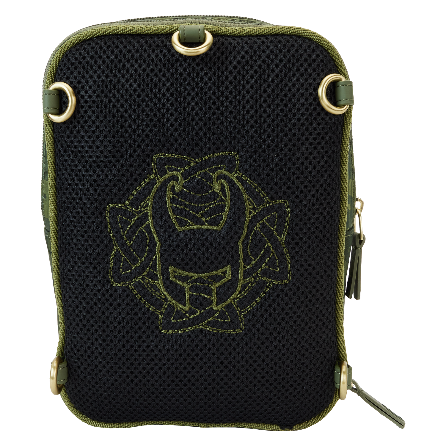 Slip away with a timeless look. The Loungefly COLLECTIV Marvel Loki The INFLUENCR Convertible Crossbody Bag offers a compact and versatile travel option on any timeline. The removable, adjustable strap allows you to convert this bag from a sling to a crossbody, allowing for hands-free portability when you’re on the go. You can also still celebrate your favorite fandom with a look that’s sleek and effortless. A green background serves as a canvas for a debossed print pattern of Loki’s helmet symbol. A zipper on the front secures a pocket for storing smaller items on your journey, and several zipped compartments add versatility for storage. This same helmet symbol also appears as a gold metal rivet on the strap. On the back, black mesh adds another textural element, where an elevated embroidered emblem of Loki’s helmet and symbols appear. Keep your essentials locked in place and easy to access with a zipper exterior pocket and a plush interior pocket.