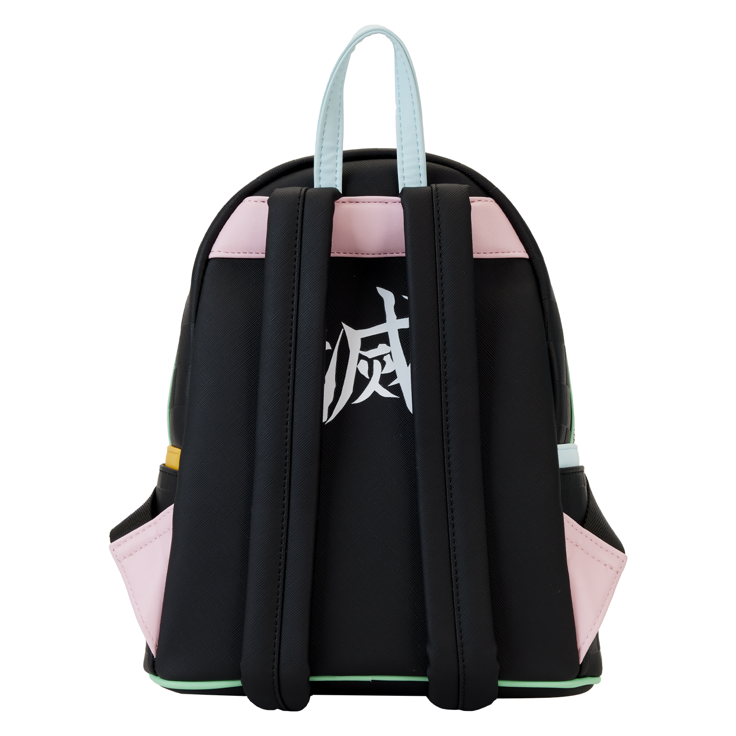 When demons attack, strike back--in style! Team up with our Loungefly Demon Slayer Group Mini Backpack. Debossed appliques of fan-favorite Demon Slayer characters appear on the front, zipped pocket, including Inosuke Hashibira, Tanjiro Kamado, Nezuko Kamado, and Zenitsu Agatsuma. On the front, top, and side pockets of this backpack, you’ll find an all-over-debossed print of an iconic checkered pattern. The debossing adds a unique textural element, and the black background complements the soft yellow, pink, teal, and blue color blocking. On the back, “Metsu” appears in kanji print. Pack and secure just what you need to slay the day while keeping your favorite fandom close.