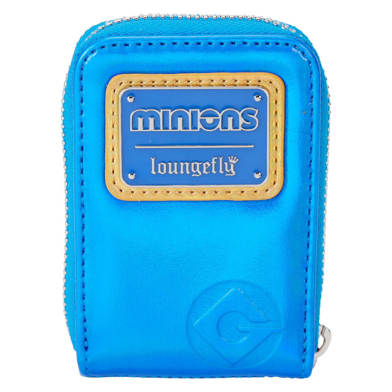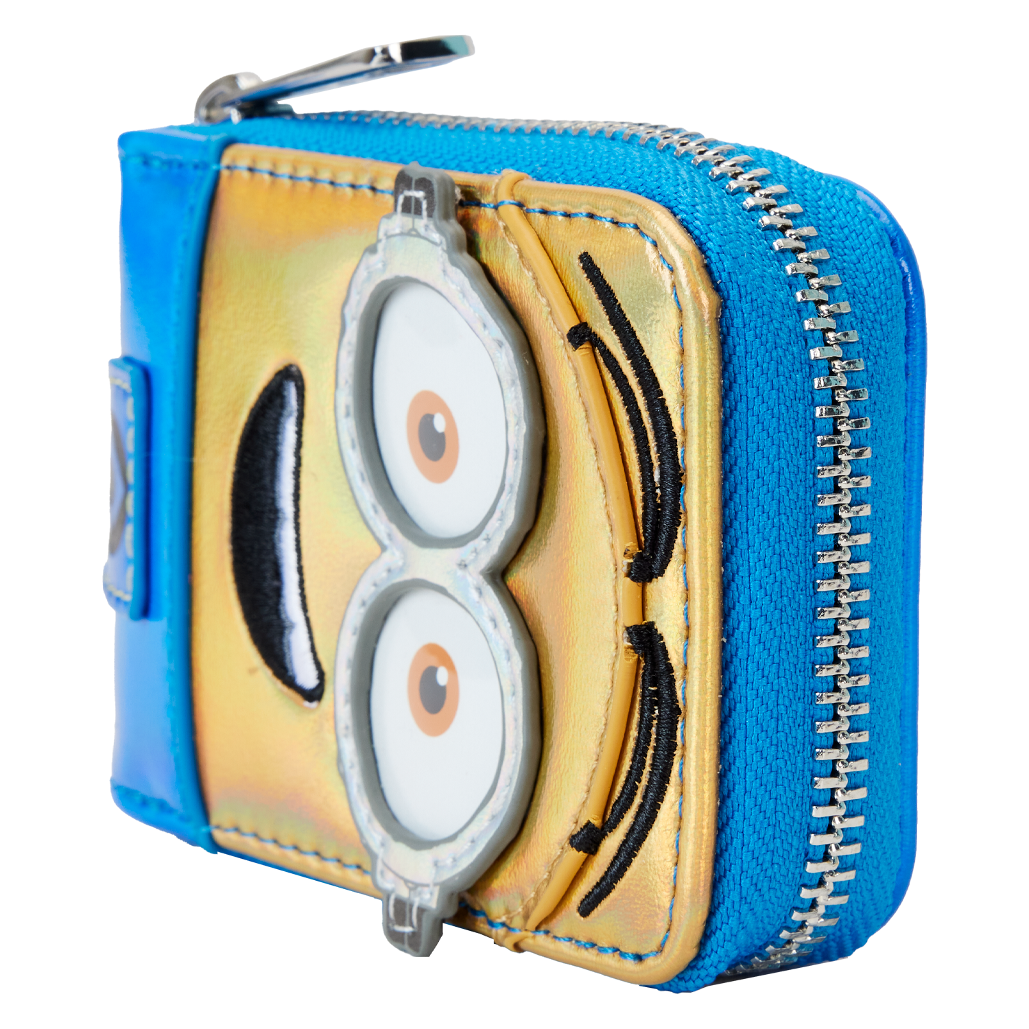 Ooh! Bello! Our Minions accordion wallet is ready for some fun. This accessory features a Minion on the front in shiny gold and blue iridescent detail. His big eyes are framed by silver goggles with clear PVC material over the front to create see-through “lenses.” Embroidered facial features bring this lovable character to life. On the back, you’ll find Gru’s symbol in printed, debossed form, blending into the iridescent blue background. Inside, there are plenty of slots for storing cards or your ID. Secure your valuables for the day and cause some good-natured mischief in style.