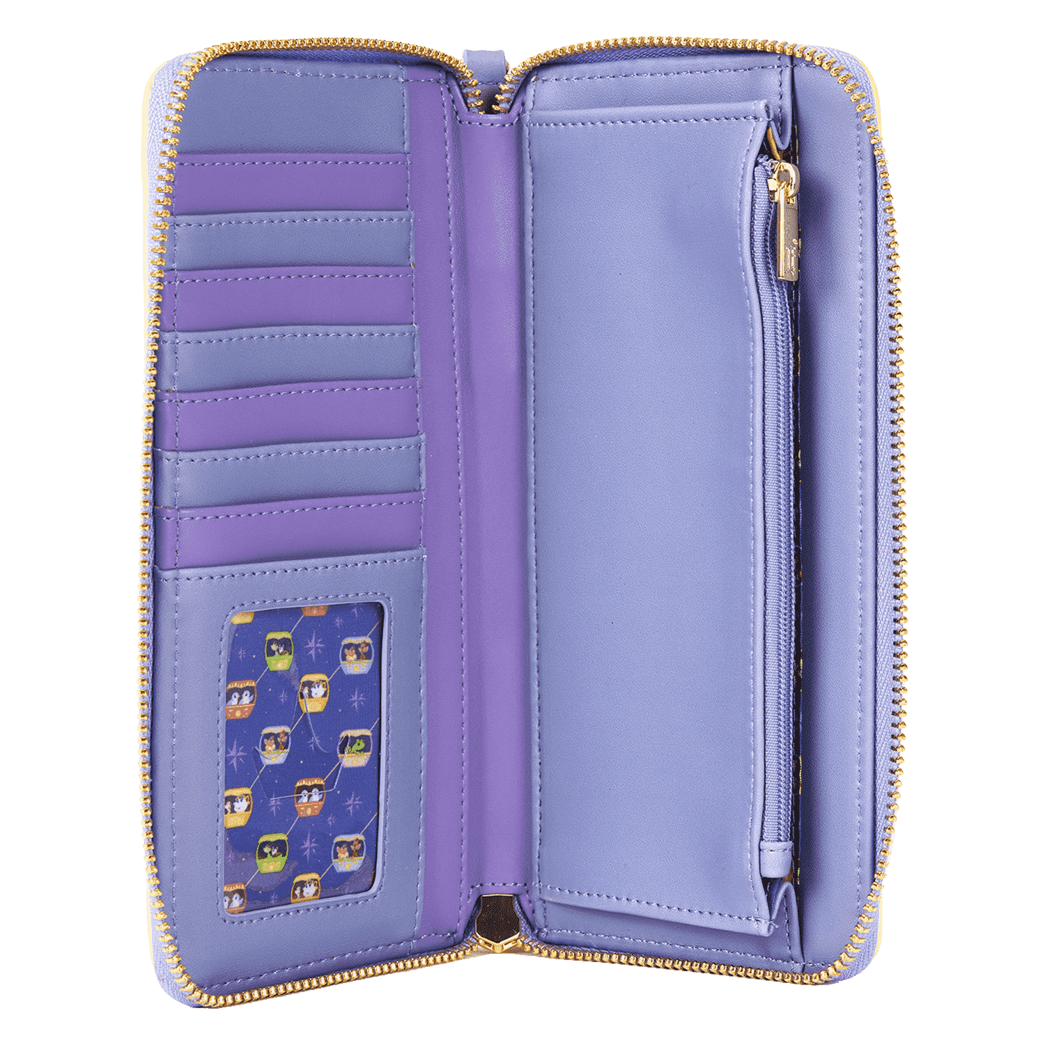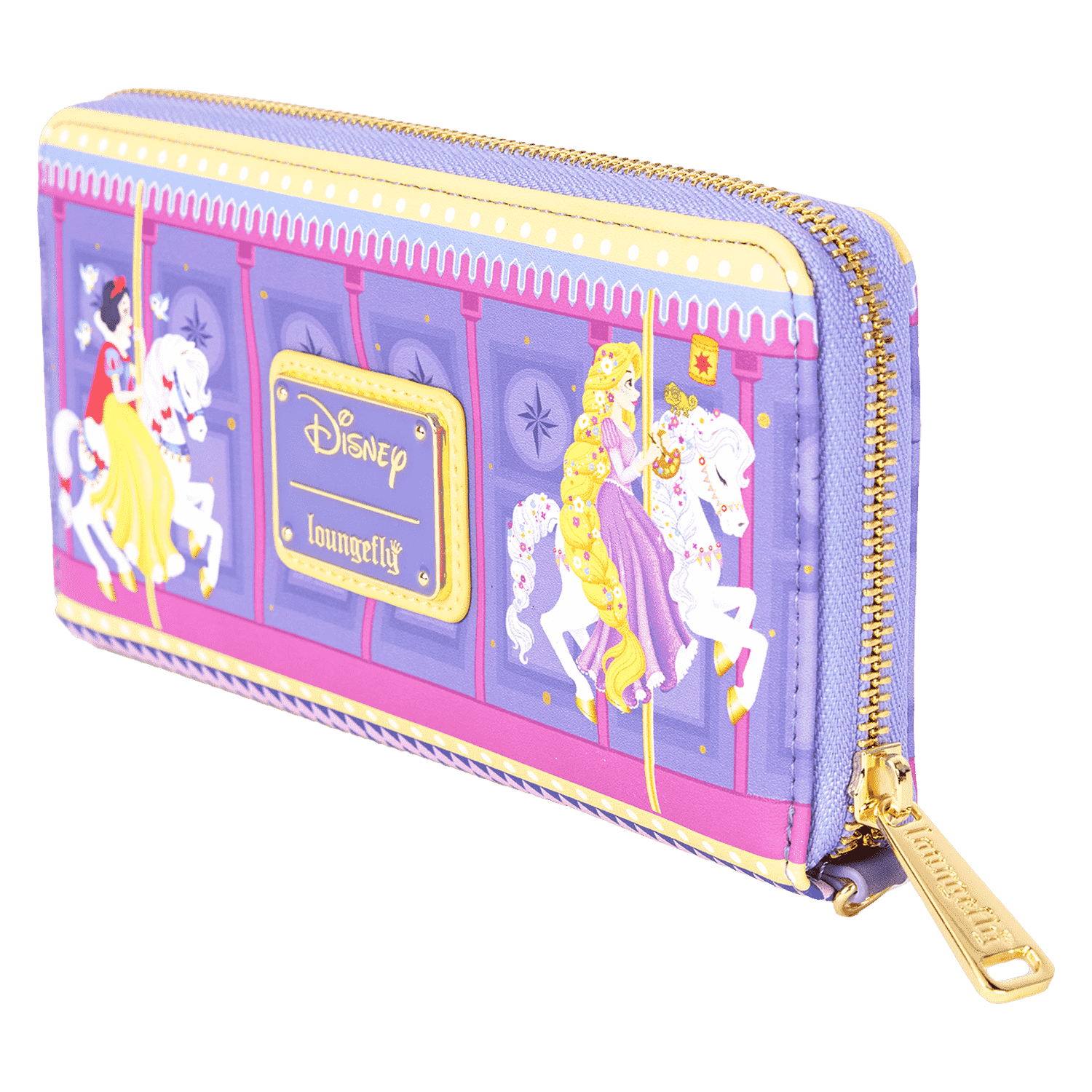 Up and down and ‘round we go! Take your wardrobe for a whimsical whirl with this charming wristlet wallet. Hum your favorite tune while looking for your favorite Disney Princesses, who ride carousel horses decorated with story-specific details. This wallet makes a playful addition to any outing and brings a bit of theme park magic to every day.