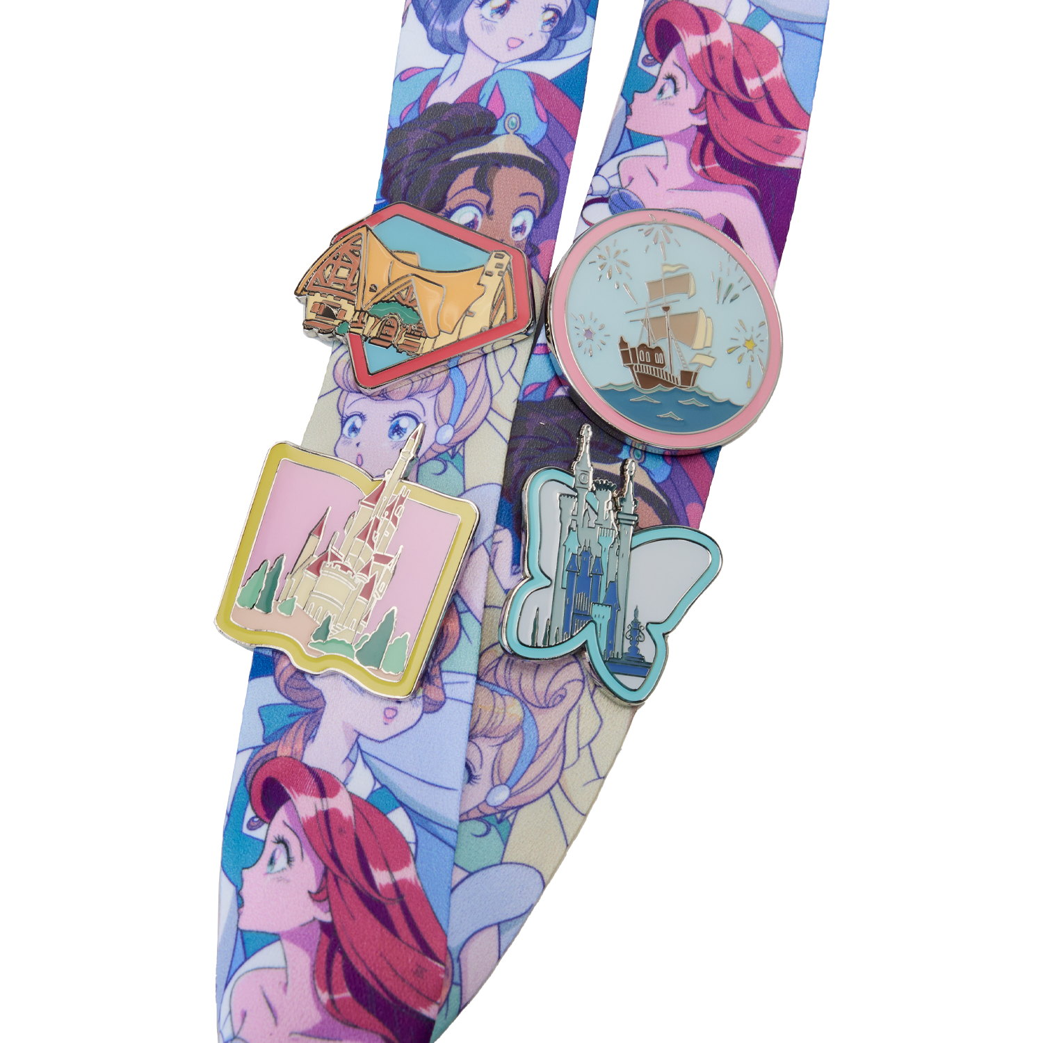 Disney Princess Manga Style Lanyard With Card Holder with Pins