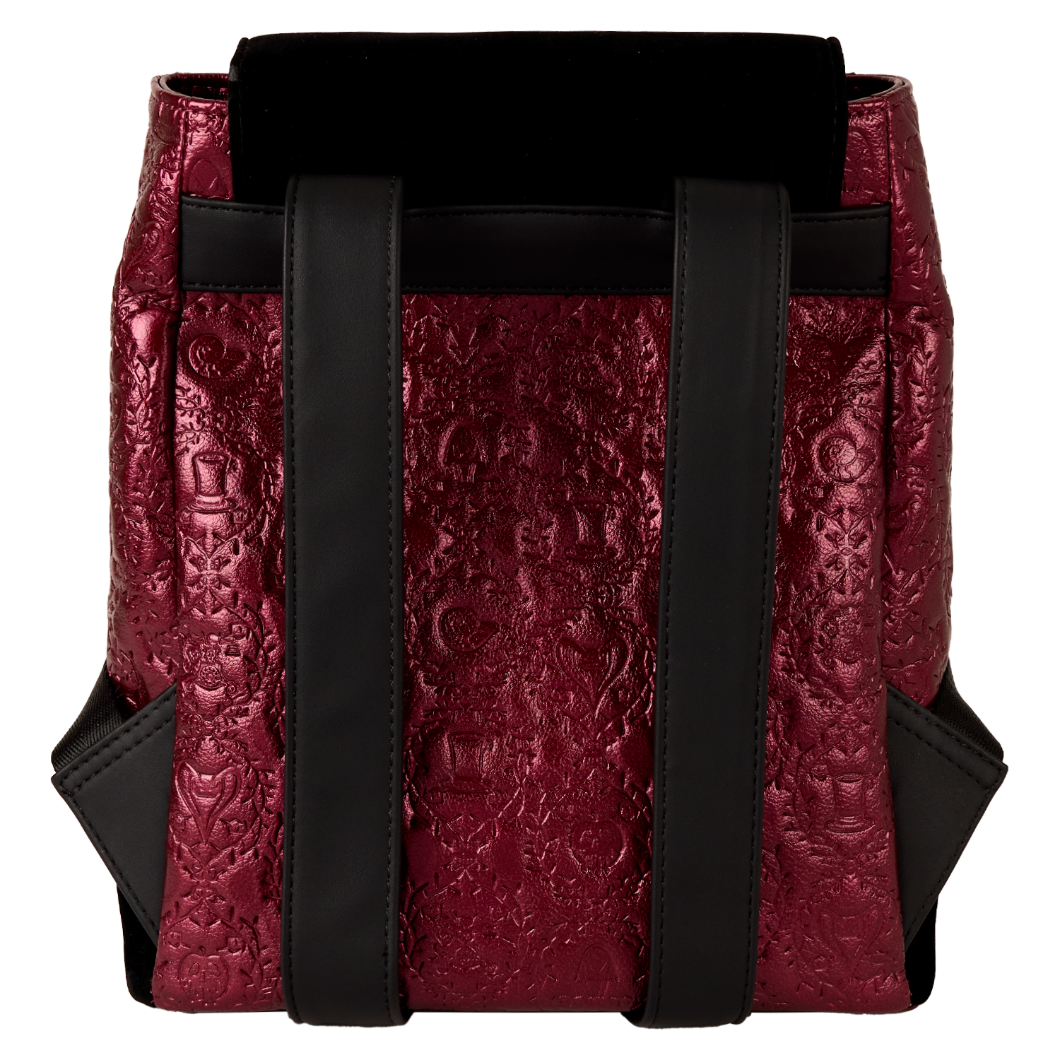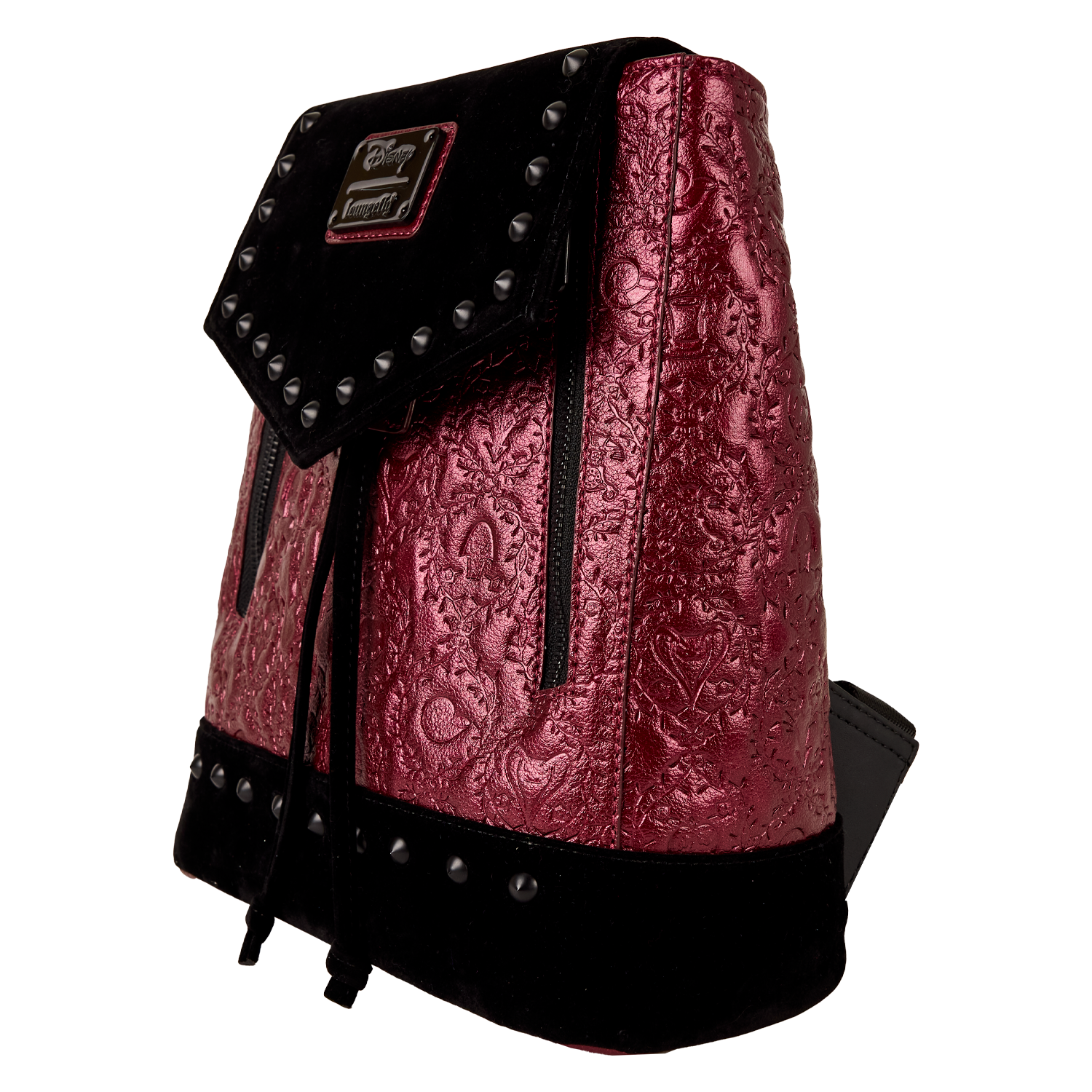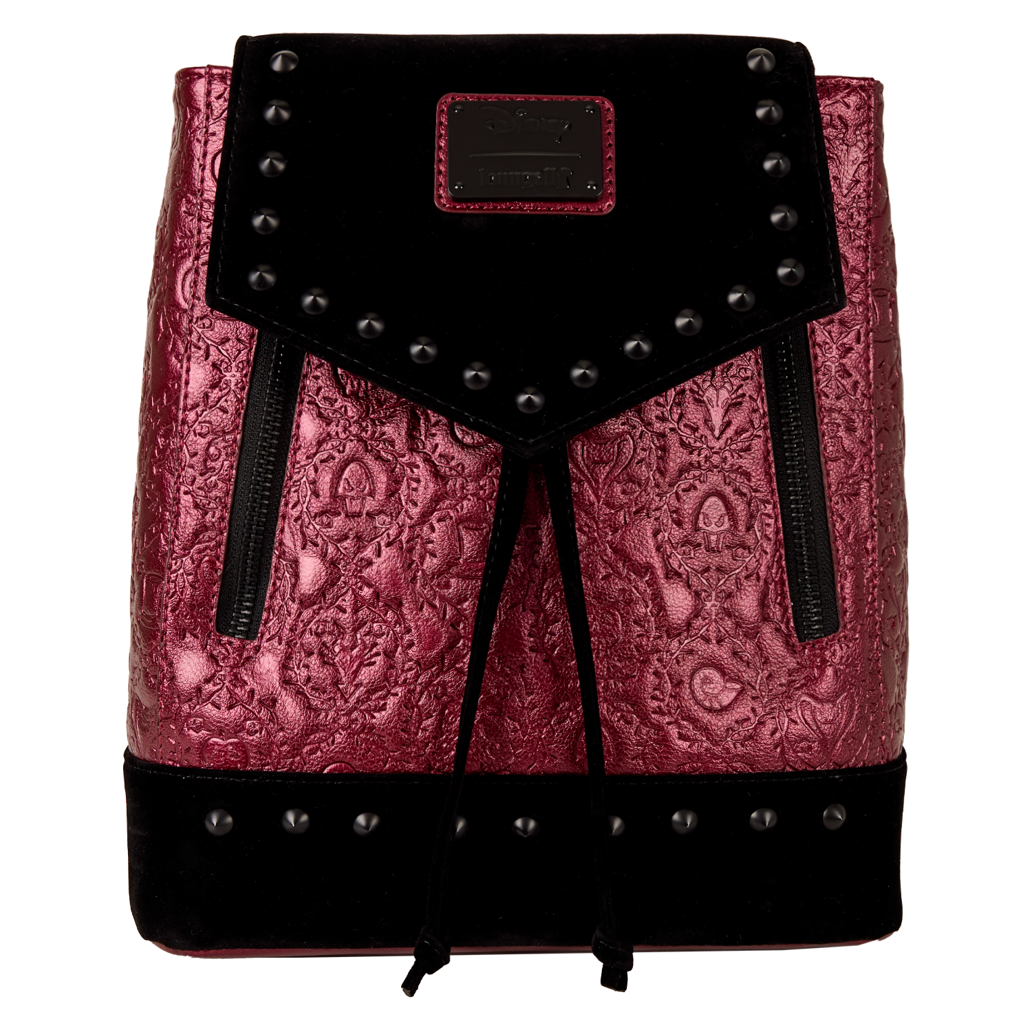 This mini backpack is the perfect accessory to add some edge to your look! Metallic faux leather, velvet, and studs make it stand out. All over, you'll find debossed symbols of some of your favorite Disney Villains surrounded by spiky vines!