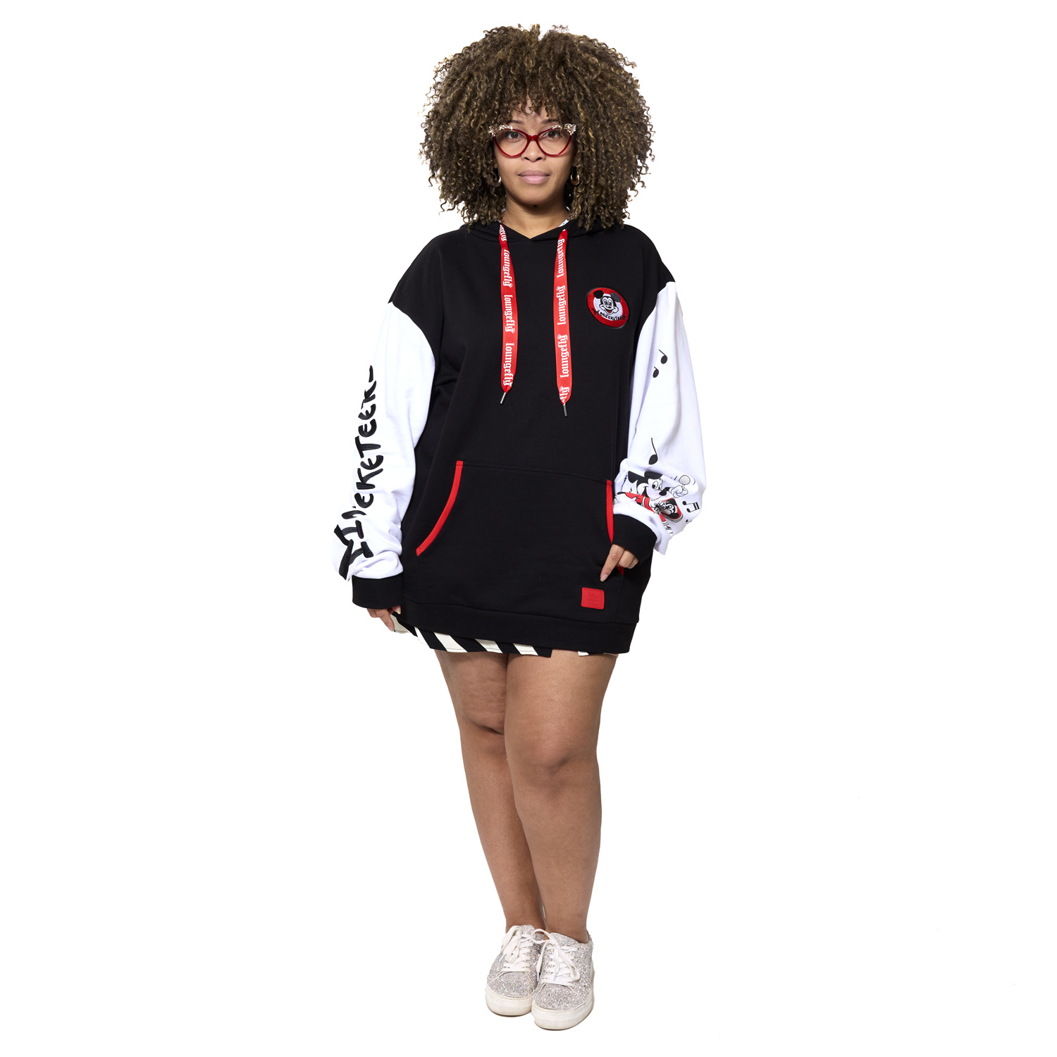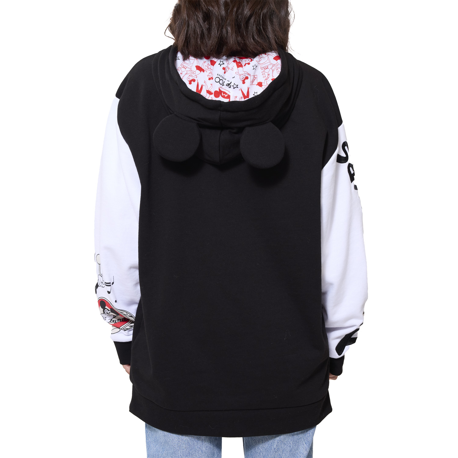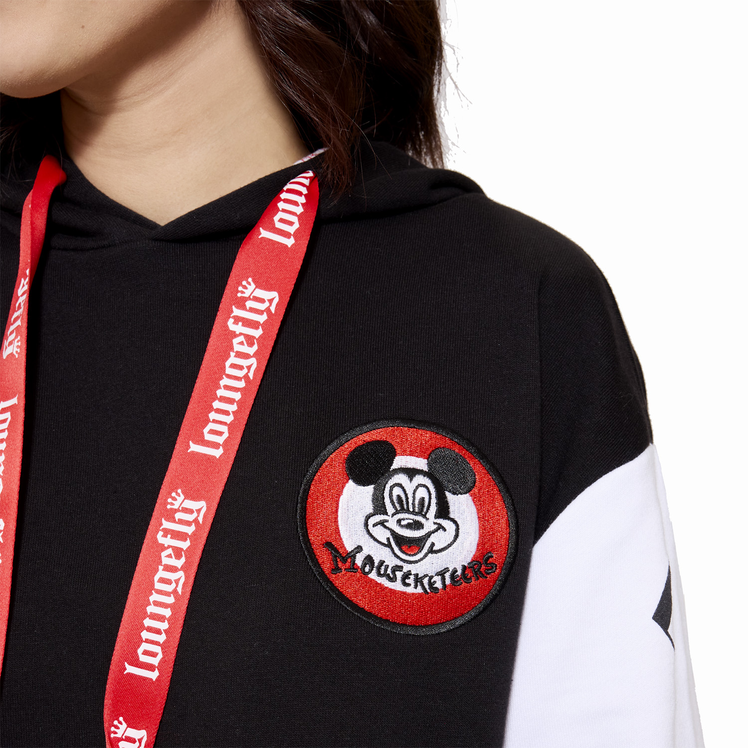 The Loungefly Disney100 Mouseketeers Varsity Unisex Hoodie is made of French Terry cotton (60% cotton, 40% polyester). Extra-large lanyard-style drawcords add versatility in wear and fit and are perfect for displaying your favorite pins. Cuffs and waistband are 95% cotton and 5% Spandex.