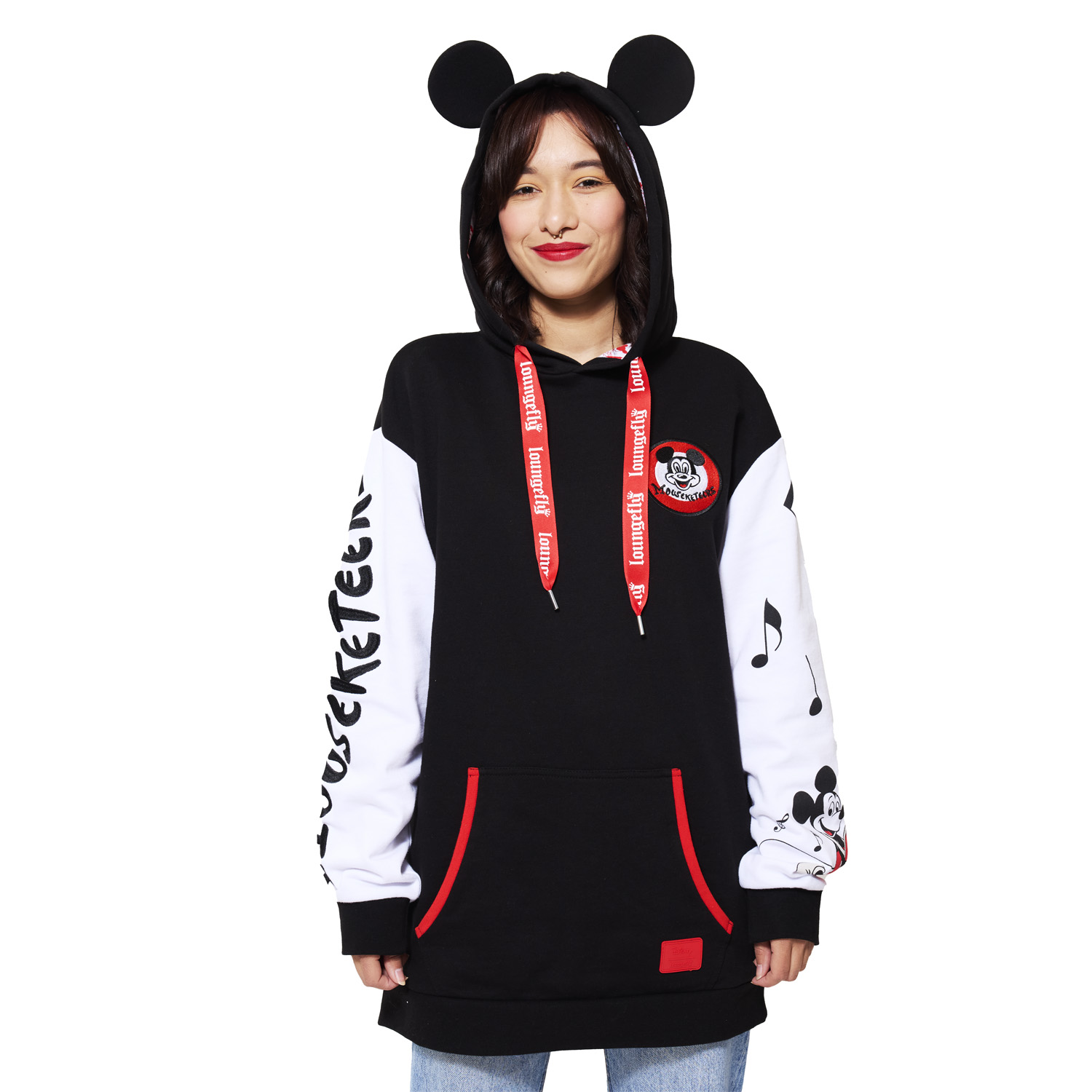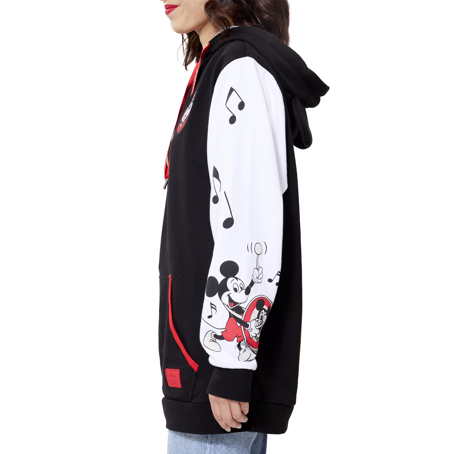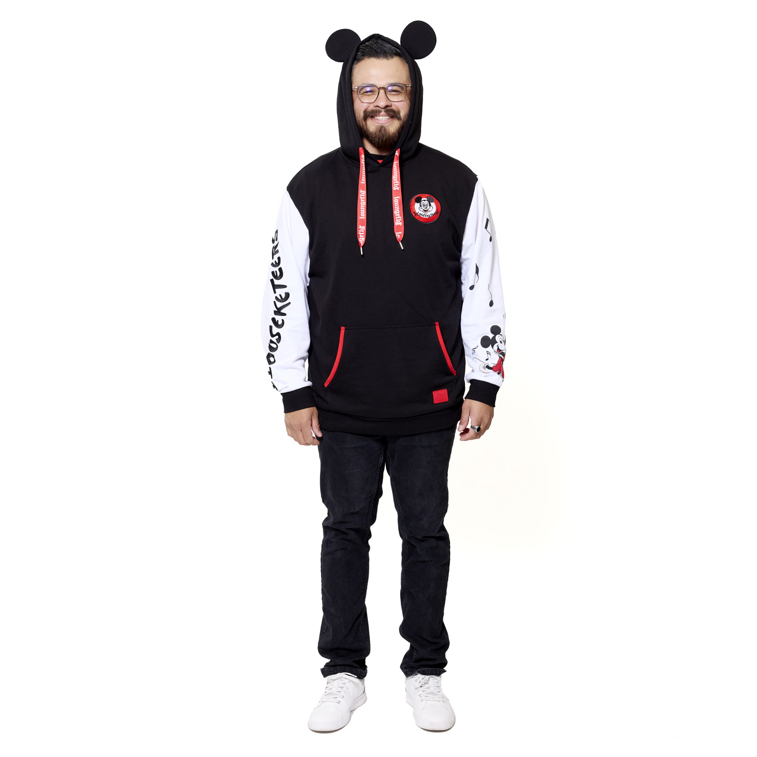 Calling all Mouseketeers! Join the jamboree with the Loungefly Disney100 Mouseketeers Varsity Unisex Hoodie. Reflecting a sporty varsity design, this pullover sweater displays a retro Mouseketeers logo embroidered on the front. One sleeve features the Mouseketeers title, while the other shows Mickey Mouse as he marches with a drum. Don your mouse ears by popping up the hood, which is lined with an allover Disney100 print! A timeless addition to any Disney wardrobe, this cozy hoodie is perfect for fans young and young at heart.