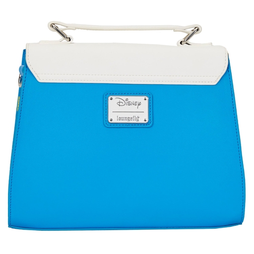 Donald Duck is coming in for a landing to ride with you on your next adventures with this Donald Duck Cosplay Crossbody Bag. On the front of the bag, Donald Duck’s face peeks out over the front flap, which is accented by a bright red, 3D detail bow. The strap includes an applique sailor hat coin bag for extra convenience. This accessory is a great accent for any Disney outfit.