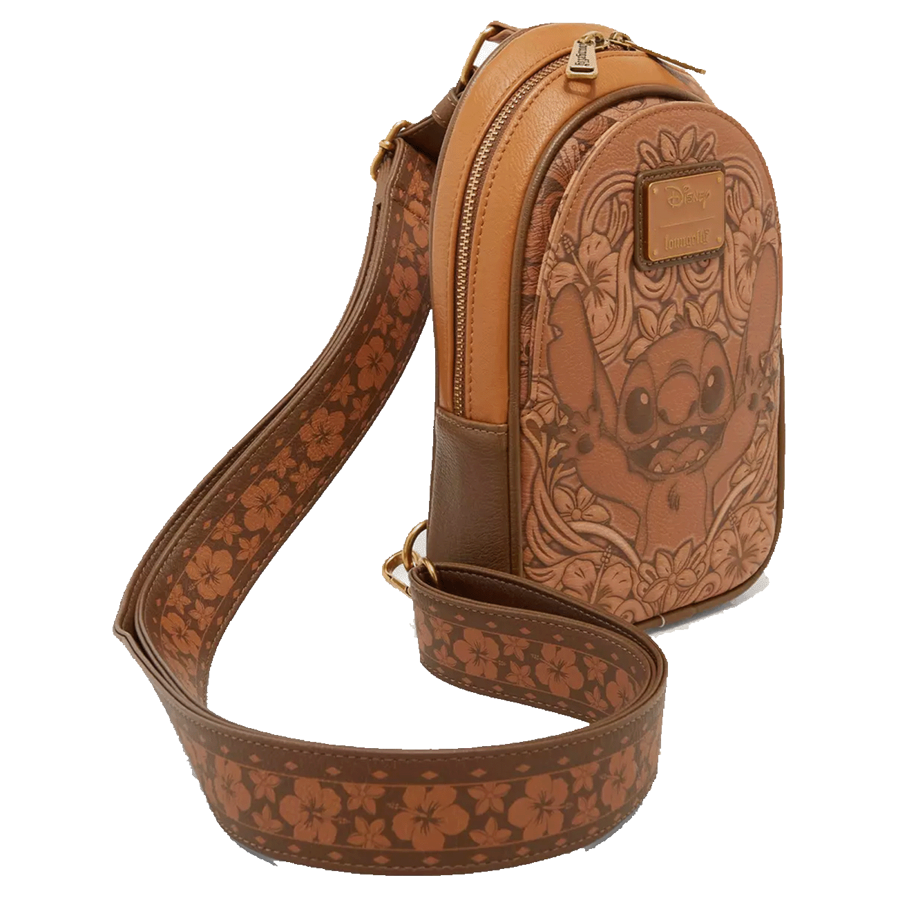 Disney Lilo & Stitch Tonal Stitch Carving Crossbody Sling Bag