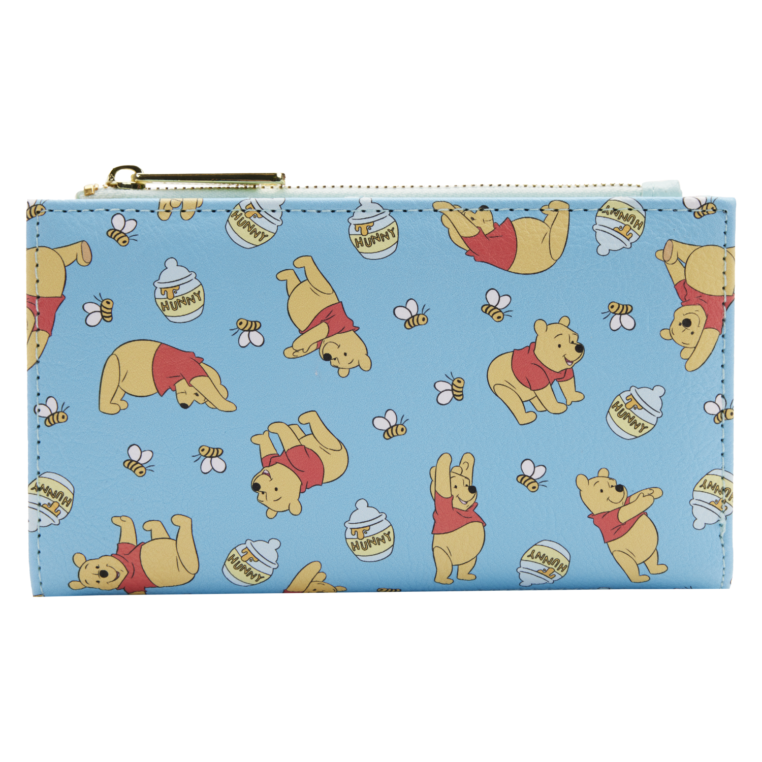 Carry a little sweetness wherever you go with the Disney Winnie the Pooh All Over Print Faux Leather Wallet. Featuring an adorable all-over print of Winnie the Pooh, honey pots and buzzing bees, this charming design captures the playful spirit of the Hundred Acre Wood. Soft pastel tones and shiny gold hardware complete the look, making it a delightful everyday essential for Disney fans.