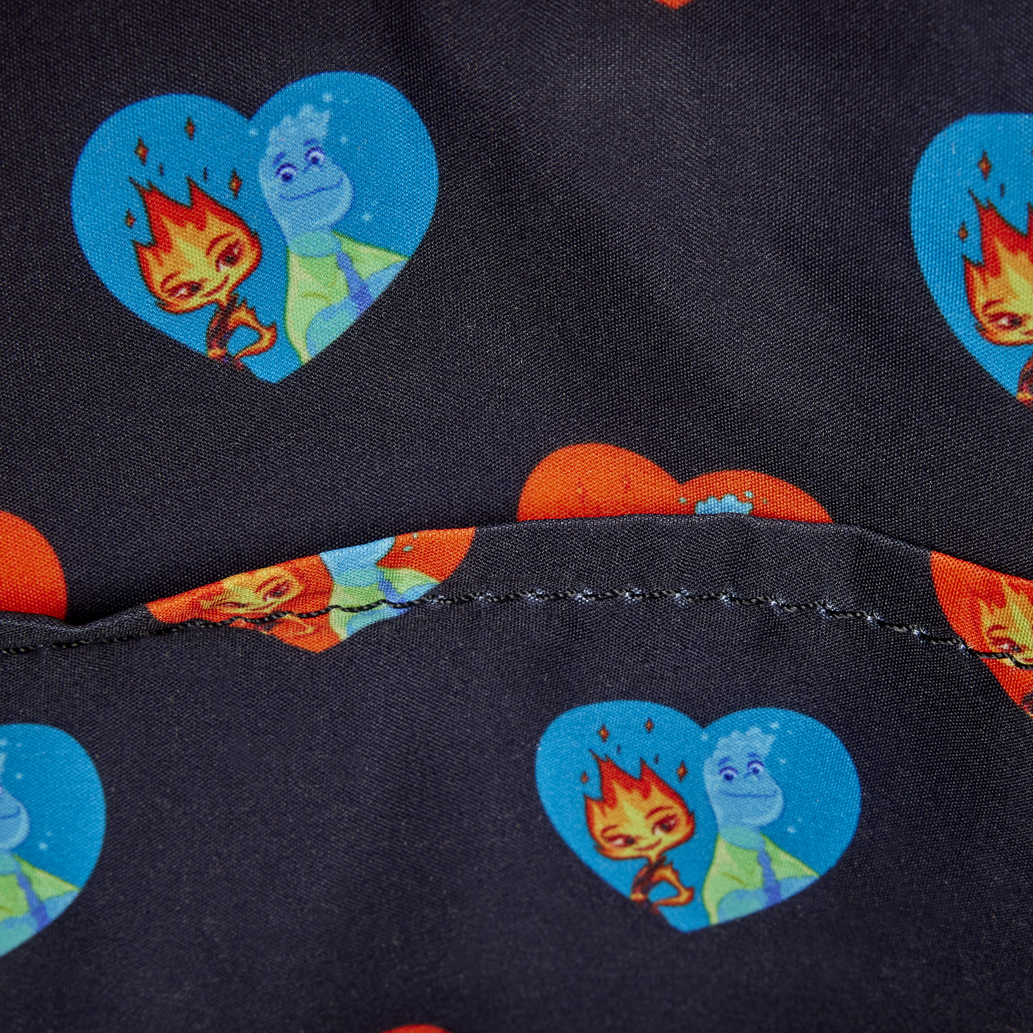This mini backpack features Ember and Wade standing together in a heart-shaped front pocket. The bag is divided by their respective colors, orange and blue, and fade together into an ombre effect. You'll find symbols of Ember and Wade on the side pockets. Plus, for extra fun, one strap is orange and the other strap is blue!