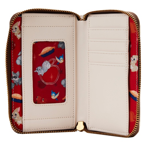 A window of opportunity awaits! A freshly baked pie sits on the windowsill of this exclusive Loungefly Disney Snow White Window Scene Zip Around Wallet. As Snow White waits for her Prince, who will come to the window? The charming cottage on the front comes to life with embroidered flowers. On the other side, the Evil Queen, as a frightful peddler in disguise, emerges from the woods with a shiny red apple. When you open the wallet, you’ll find 4 slots for carrying cards, 2 billfold slots, and a clear slot for holding your ID. A die-cut shape of an apple, on the clear ID holder, adds a delightful touch. It’s the perfect accessory for window-shopping—or for turning everyday outings into charming adventures. Act fast to collect this Loungefly exclusive; supplies are limited.