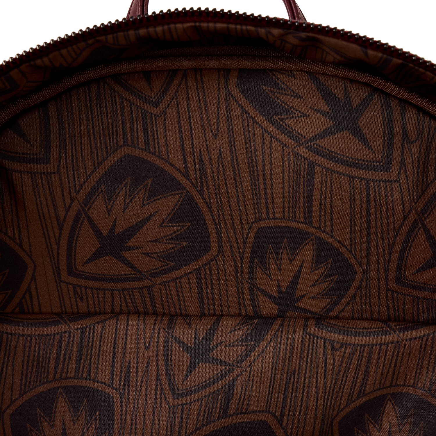 This backpack is inspired by Groot from Marvel's Guardians of the Galaxy. The front pocket is in the shape of a cassette tape that's labeled as "Awesome Mix Vol. 1." The tape reels move on a spinning rivet! All over, you'll find a debossed pattern of cassettes, Groot, music notes, and more! For another fun touch, you'll find Groot on the zipper pull and an enamel pin of him on the strap!