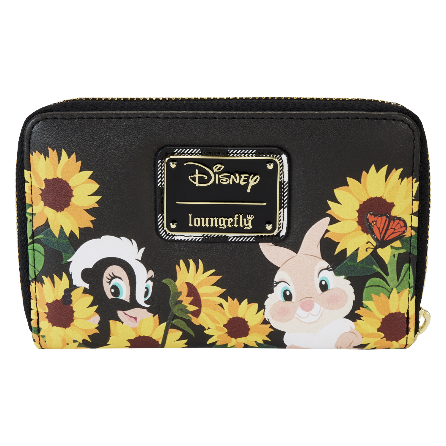 Time spent with friends simply feels like sunshine. Gather in the garden with the Loungefly Bambi Sunflower Friends Zip Around Wallet, where bright yellow sunflowers cover the accessory in a cheerful print. On the front, Bambi and Thumper peek out from a field in bloom while butterflies flutter above them. Flower and Miss Bunny make an appearance on the back. Open the wallet to reveal four slots for holding cards and a clear slot for ID. This accessory makes a radiant addition to any outing and is perfect for Disney fans looking to keep their favorite characters close.