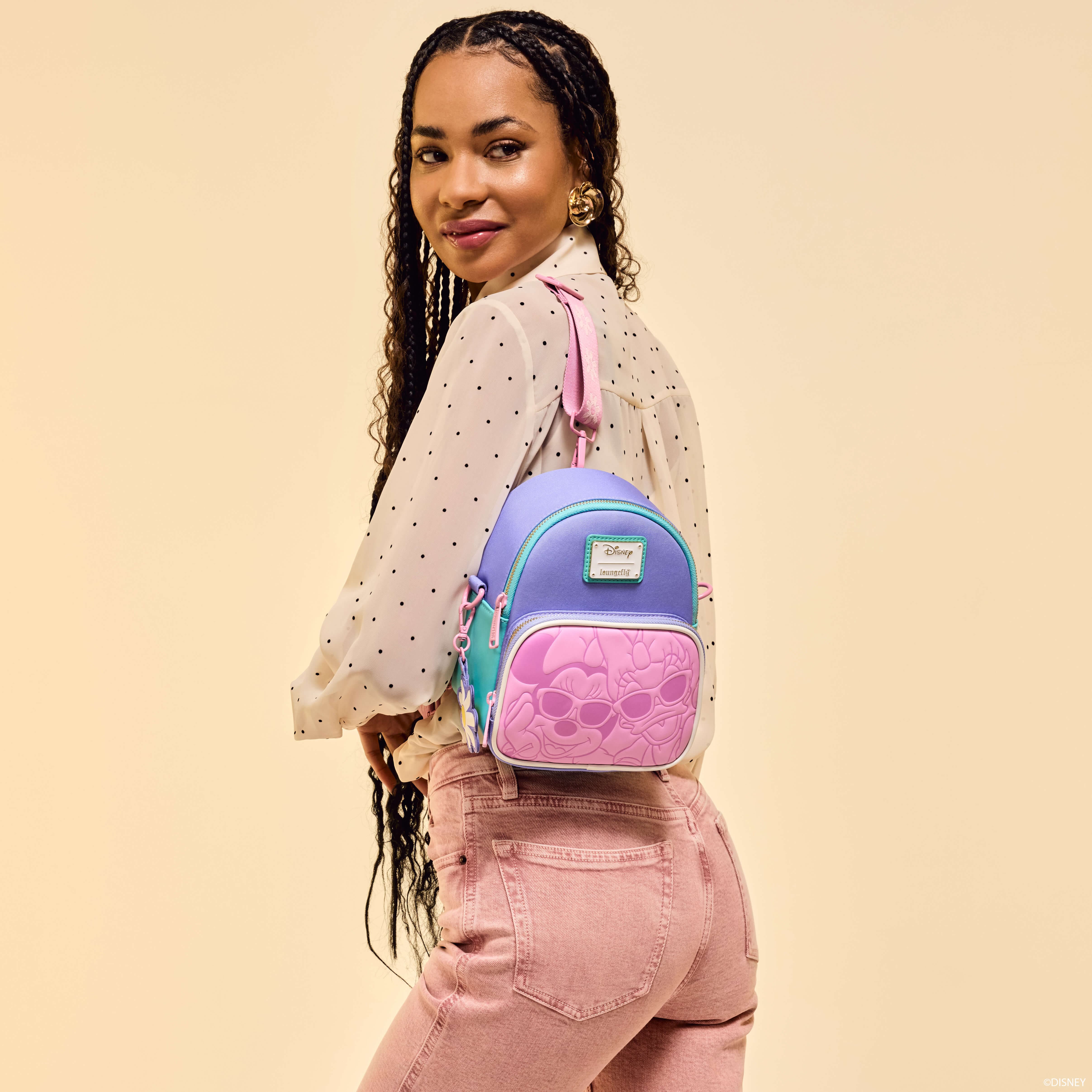 Oh, goodie! It’s time for a shopping spree! Inspired by our favourite trendsetters, this mini backpack uses pastel colours to match Minnie and Daisy’s world-renowned sense of style. Switch up the straps to wear the bag in your preferred style! With plenty of room to store your fashion must-haves, this accessory will be your bestie on any outing.