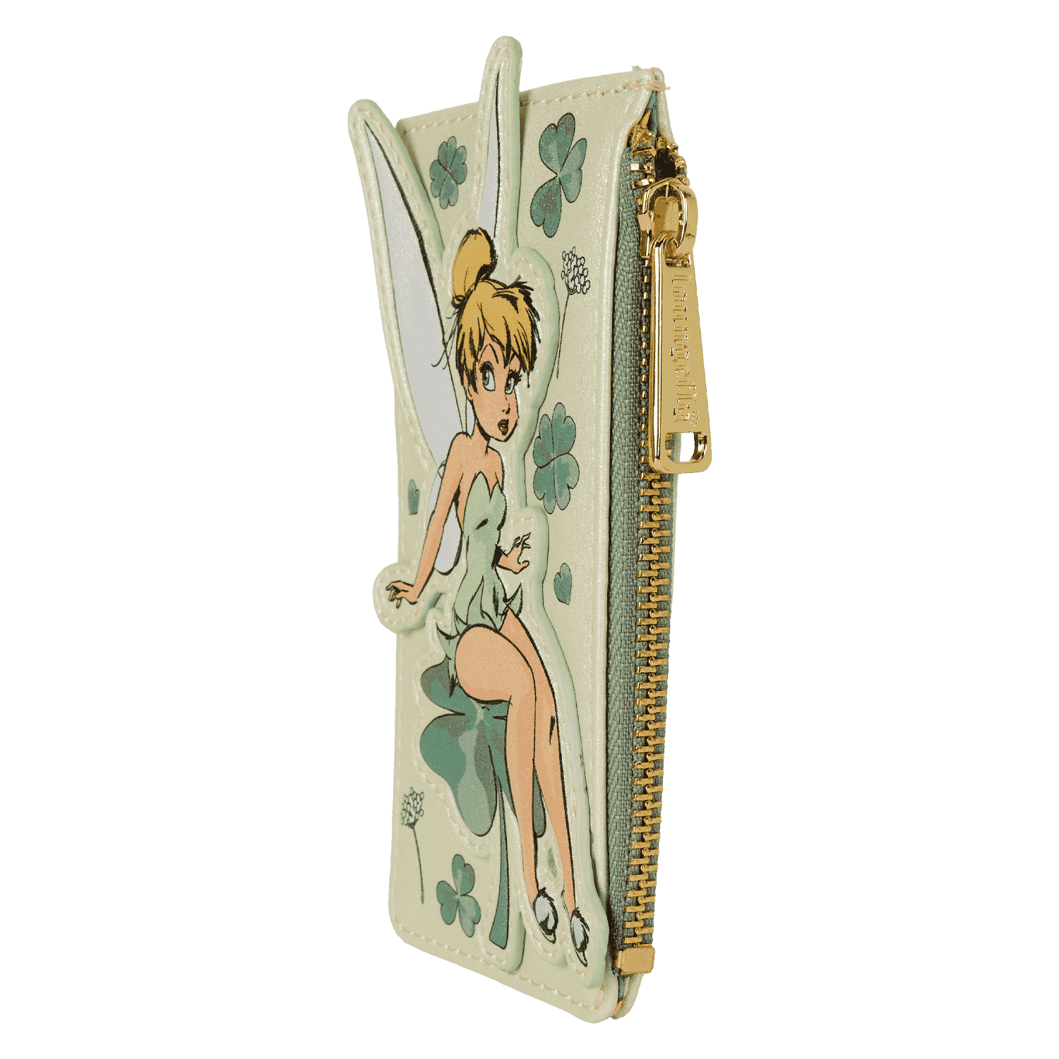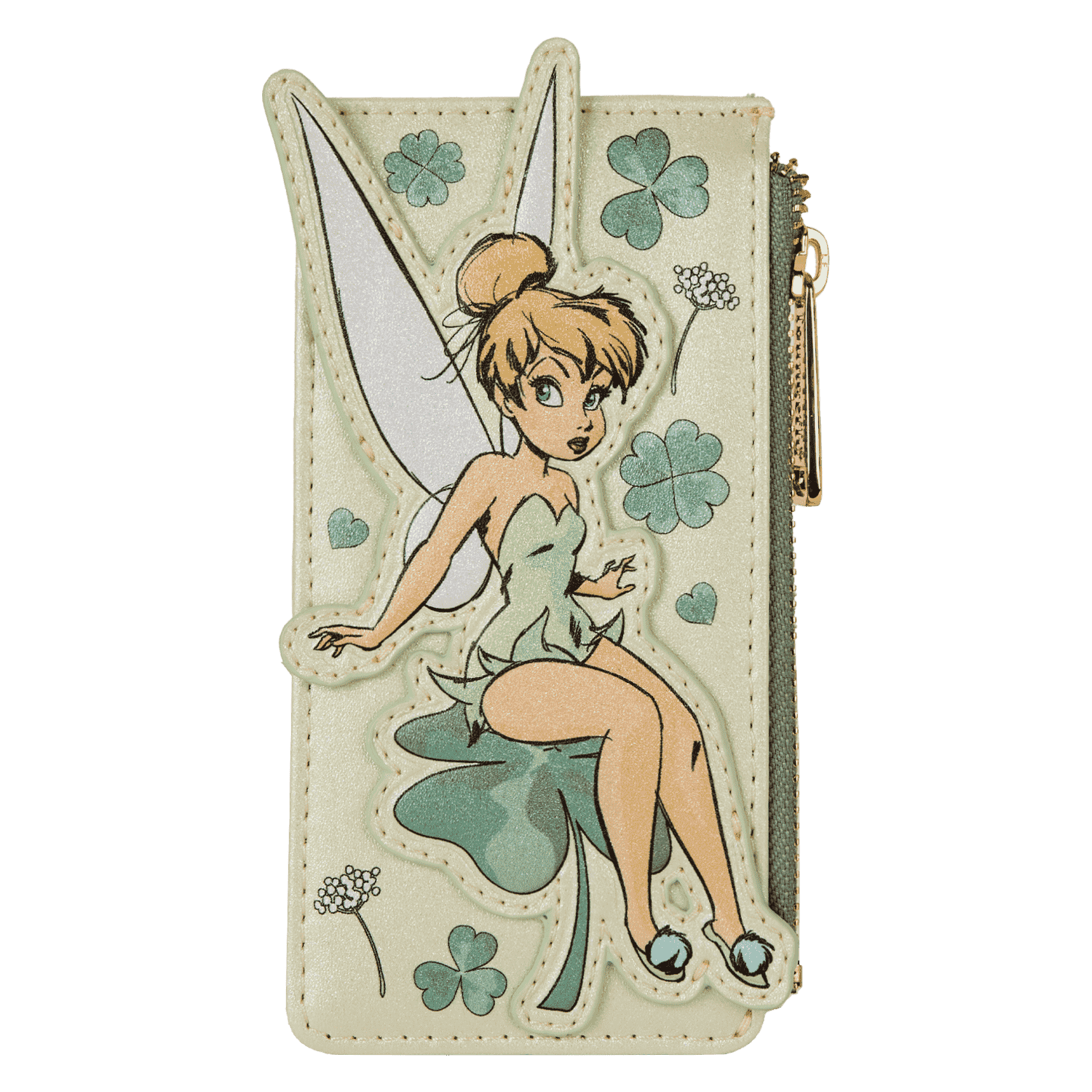Luck takes a fashionable turn at the second star to the right. This Disney’s Tinker Bell card holder is definitely a lucky find! On the front, Tinker Bell appears as an applique print, seated on a four-leaf clover, and she’s wearing her signature green dress with pom-poms on her shoes. Secure your ID and important cards for the day in this sparkly accessory and prepare to take off on magical adventures.