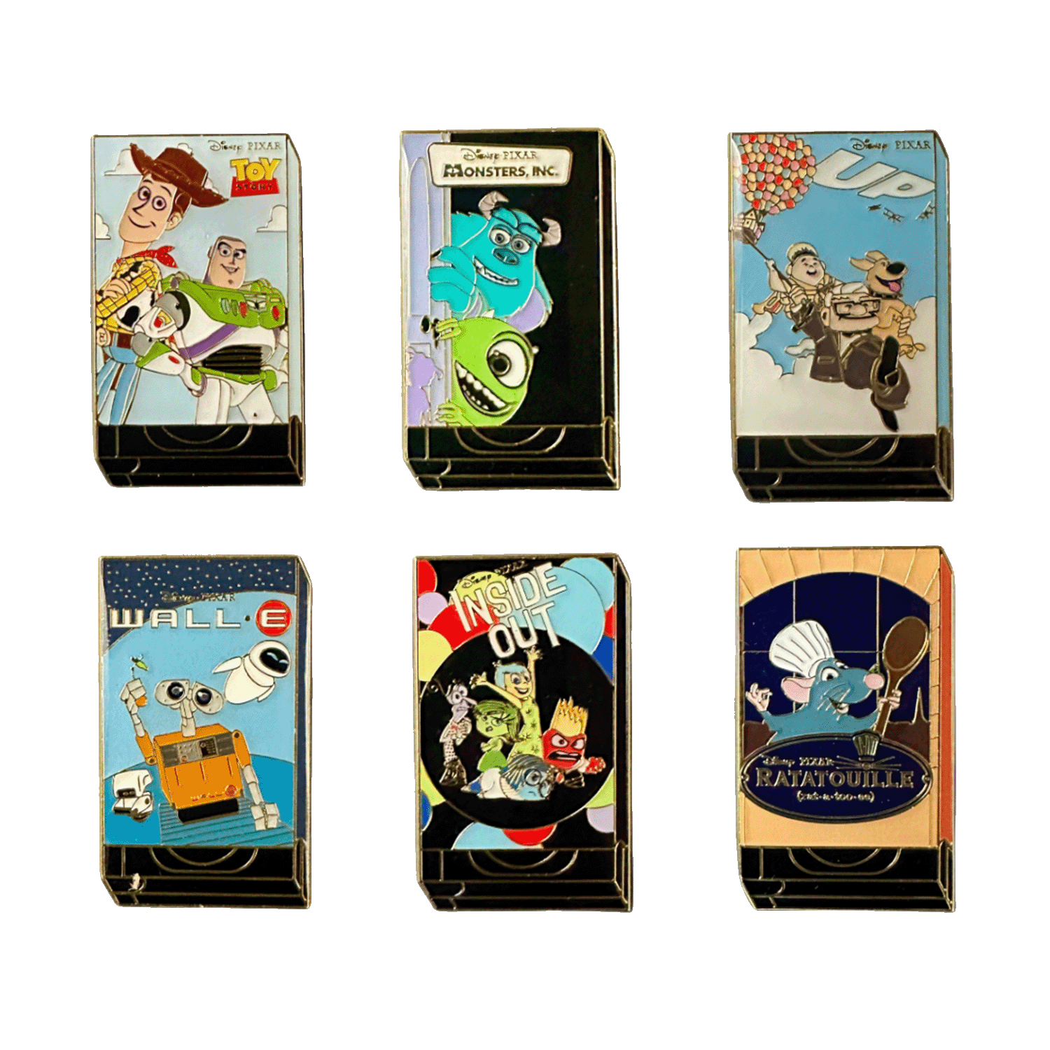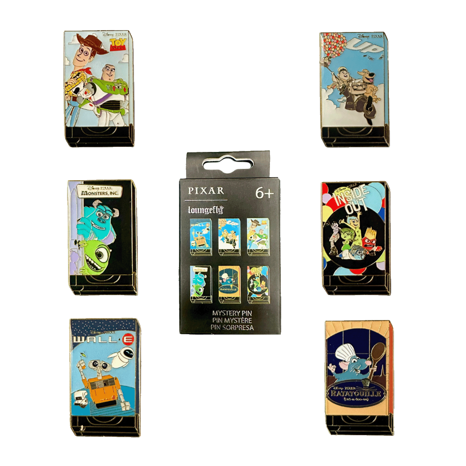 Celebrate your favourite Pixar films with the Loungefly Disney Pixar VHS Blind Box Pin Set! Each pin features a beloved movie case reimagined as a collectible enamel pin, including WALL-E, Up, Toy Story, Monsters, Inc., Ratatouille, and Inside Out. Add a nostalgic Pixar touch to any outfit or accessory. Which one will you get? It’s a surprise!