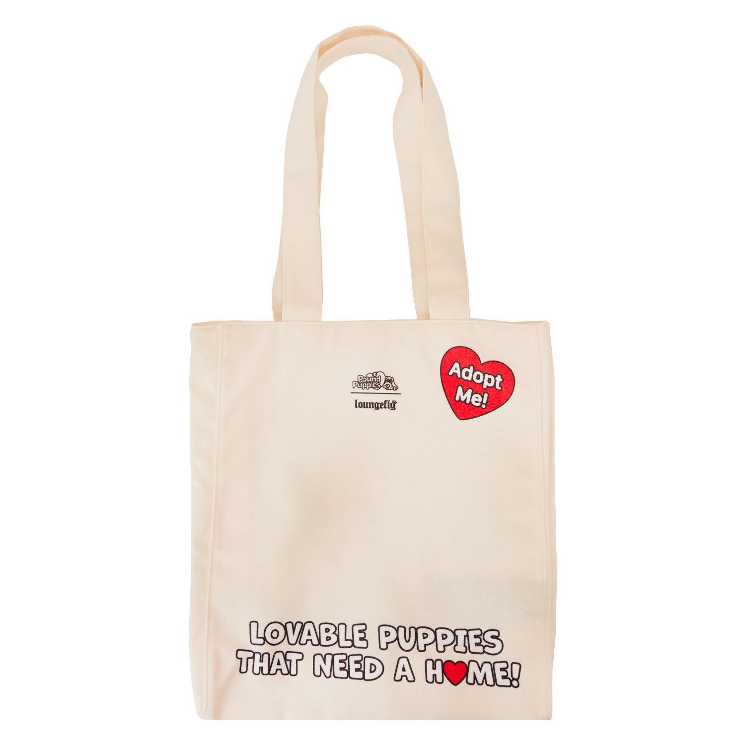 A fur-ever friend wants to tag along wherever you go! Bring home an adorable Pound Puppies tote bag. This roomy bag features a print of a sweet chocolate brown Pound Puppy on the front, draping its paw over a red heart. More prints on the front and back evoke a heart-warming, nostalgic tale of pets longing for a forever home. On the back, a printed red heart reads “Adopt Me!” and near the bottom, you’ll find the words “Lovable Puppies That Need a Home.” Show off your favourite fandom with this fetching accessory.