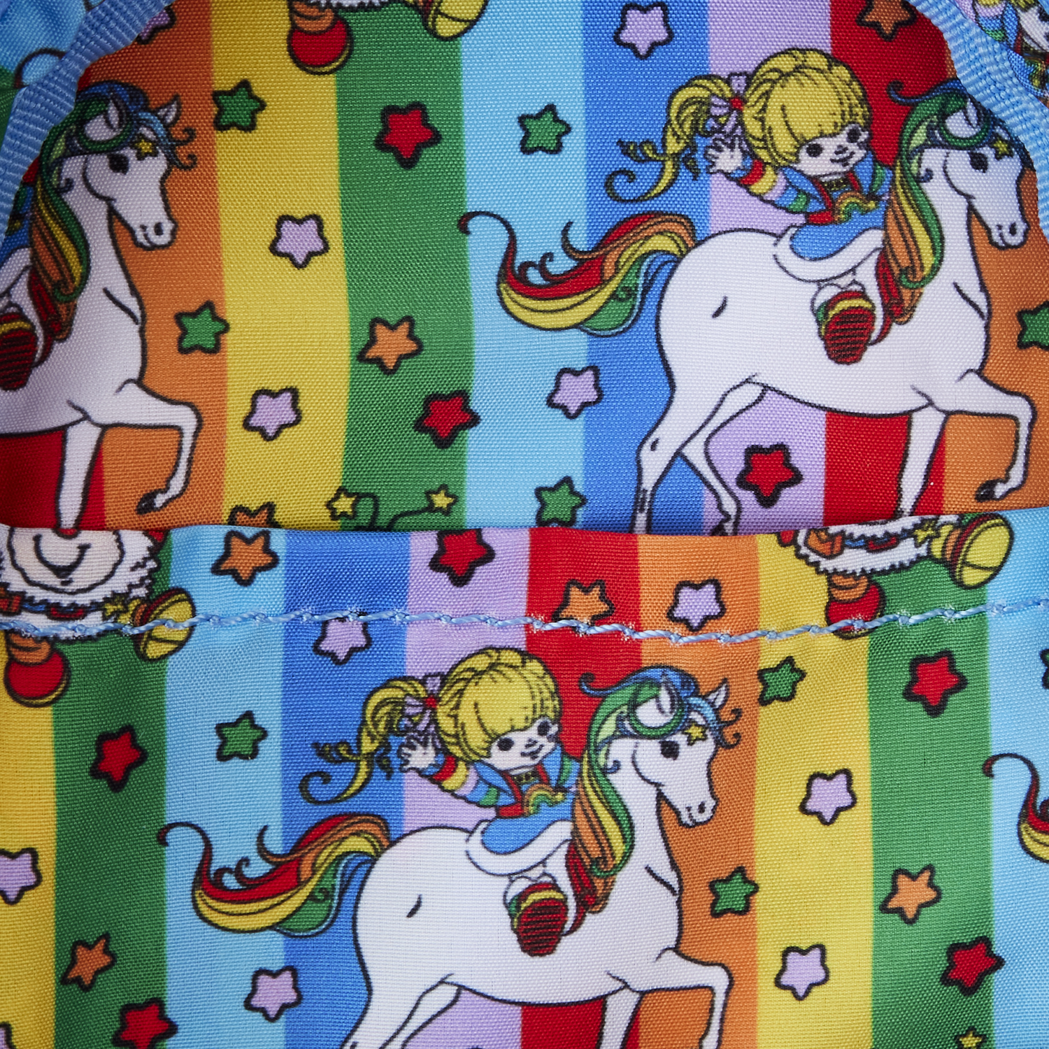 The power of the rainbow is yours! Bring color and happiness wherever you go with the Loungefly Rainbow Brite™ Castle Mini Backpack Pencil Case. On the front, Color Castle rises through the sky as Rainbow Brite rides Starlite on the zipper pocket below. On the back, Twink travels down a rainbow while Star Sprinkles appear around him. A durable lobster clip hangs at the top, making it easy to carry your important items with you. This pencil case has room for all your creative essentials and is sure to fight off any forces of darkness and gloom.