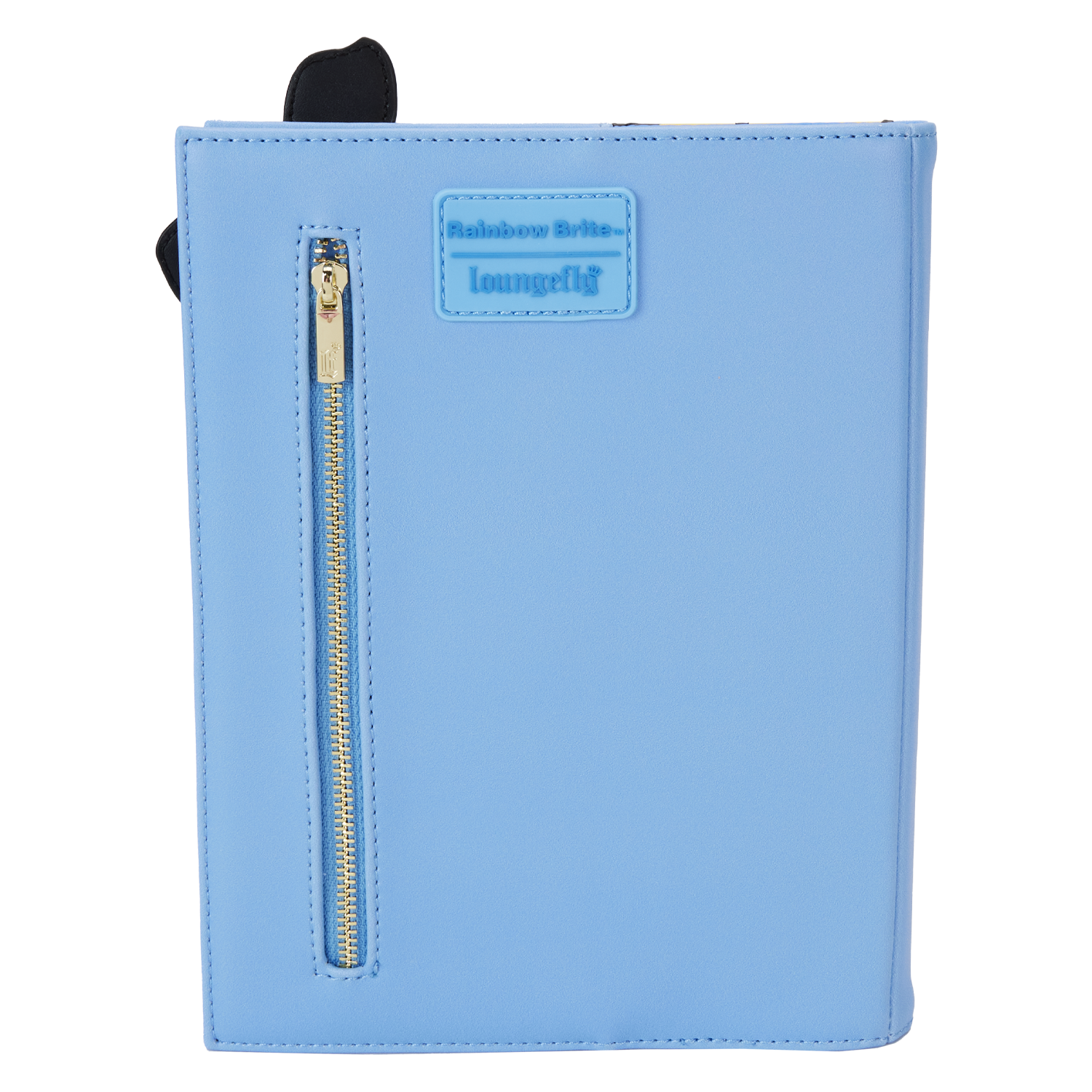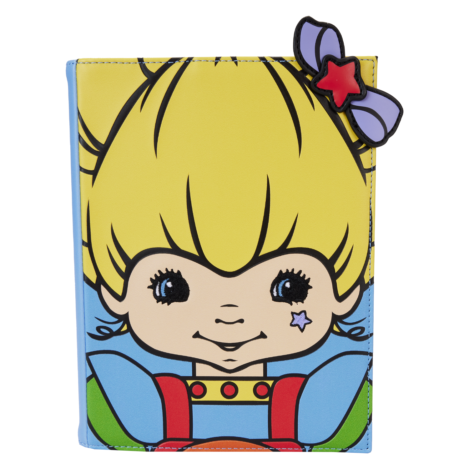 The Loungefly Rainbow Brite Cosplay Journal is made of vegan leather (polyurethane) and includes shiny gold hardware. Additional features include applique and printed details.
