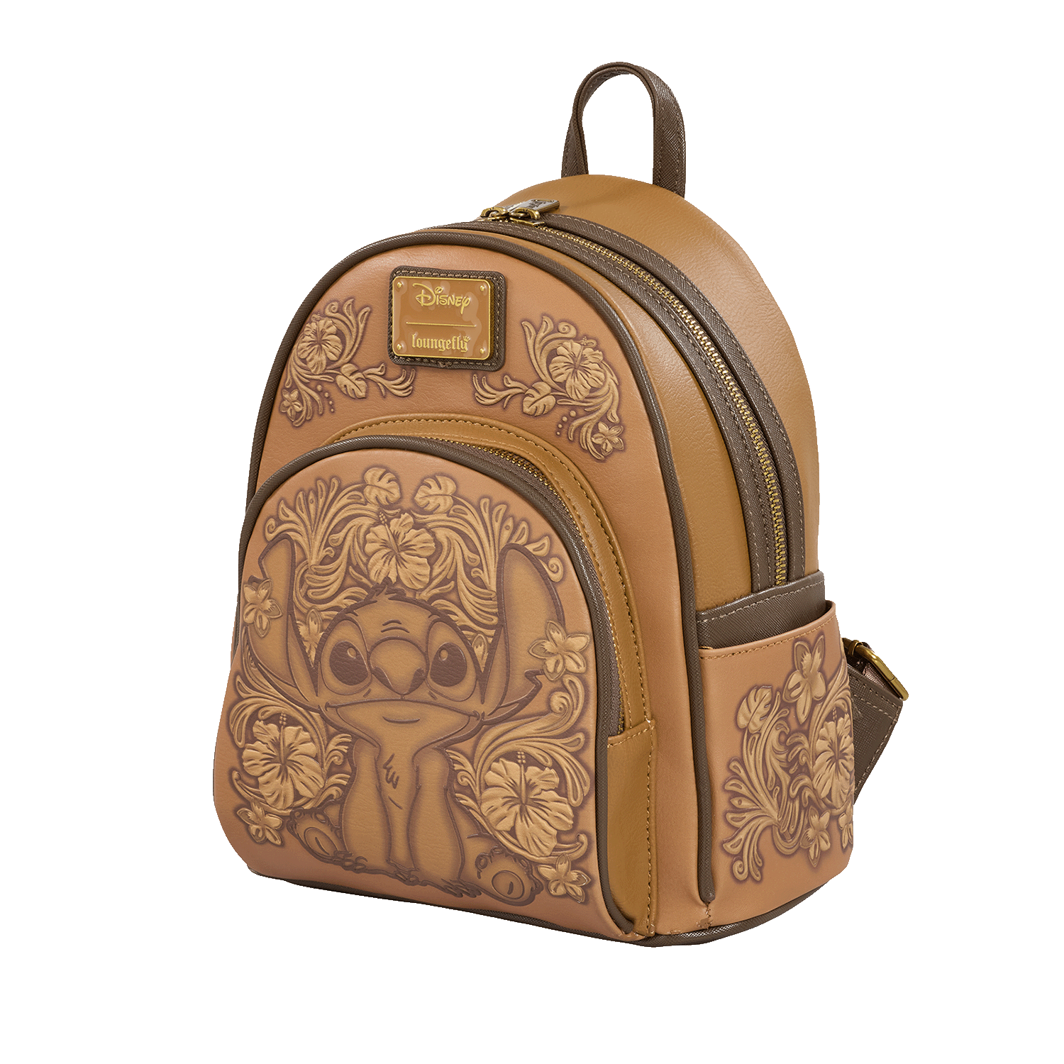 Ka-bloom! Make an entrance—or a fashionable escape—with this beautiful mini backpack featuring Disney’s Stitch. The design emulates leather tooling techniques to reveal an elegant, debossed print of Stitch surrounded by tropical flowers. Pack just what you need for a day’s worth of adventures in full bloom.
