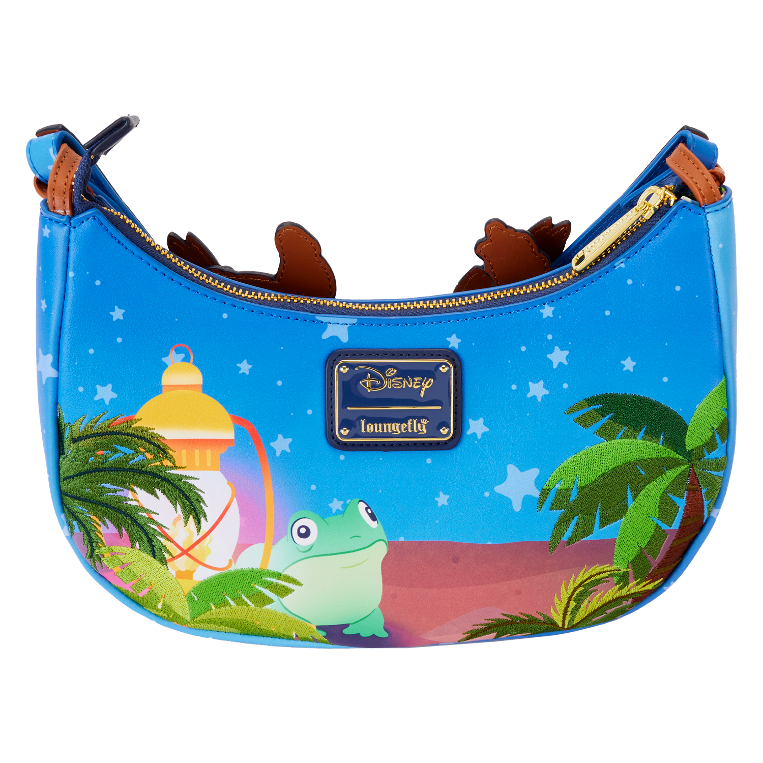 There’s nothing like a relaxing evening under the stars! Camp out on the tropical shores of the great outdoors with the Loungefly Stitch Camping Cuties Hammock Crossbody Bag. On the front, a cozy hammock hangs lazily from palm trees on the bag’s straps. As the bag moves, watch Stitch, Scrump, and the ducklings swing back and forth with the hammock’s rope details! The beach scene continues onto the back, where a frog sits next to a lantern. This bag has plenty of room to store your gear and is the perfect accessory for hanging out with friends.