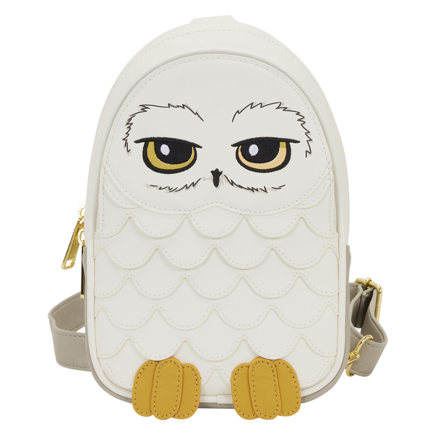 This sling bag is inspired by Harry Potter's owl, Hedwig. She comes to life on the bag with embroidery and scalloped material. Turn the bag around to find another image of Hedwig debossed on the back! This cute sling lets you add some magic to your day while keeping all your essentials safe!