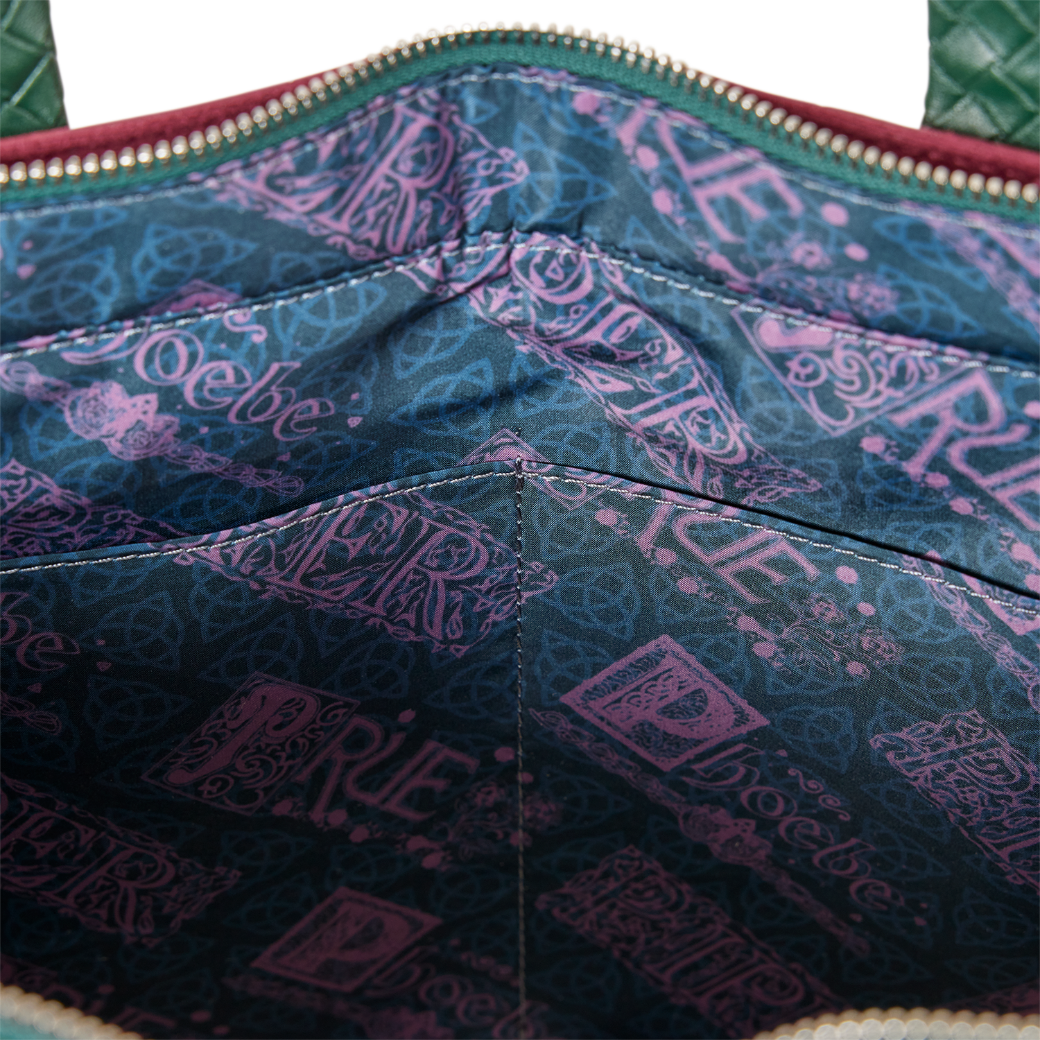 You'll find the triquetra symbol front and center on this bag, with "Power of Three" written over it. Metallic embroidery, foil details, and faux suede make this bag a powerful fashion statement.