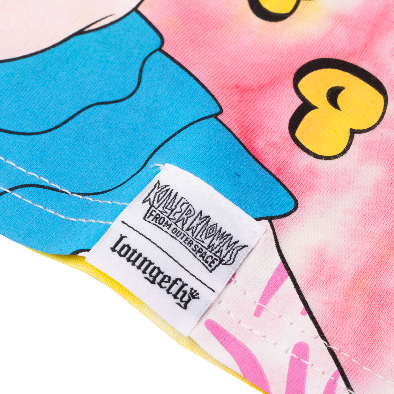 If embracing a creepy-clown trend is in your makeup, prepare to create a killer look. Just pull on our Killer Klowns from Outer Space Tee and take off on fun adventures in style. This short-sleeved shirt features a dizzying array of Killer Klown characters, including Jumbo, Fatso, Chubby, Spikey, Slim, and Shorty. Their images appear in a “huddle” against a colorful tie-dye-themed background—as if they were peering down over you. Buttered popcorn kernels trail among them. Show off your favorite fandom in this cool and versatile tee, but watch out for suspicious-looking cotton candy on your journeys.