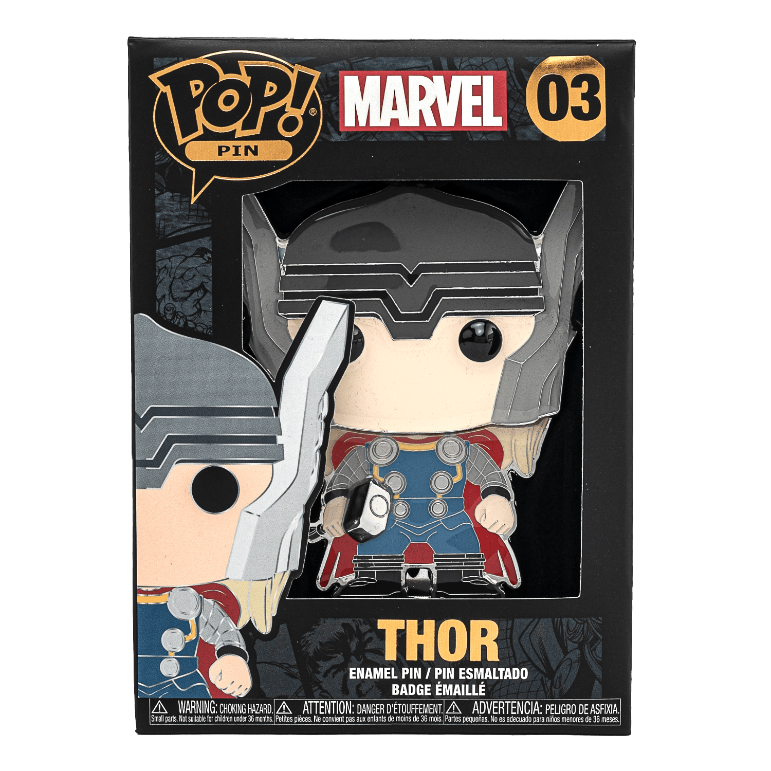 The Asgardian god of thunder, Thor, is here to shake up your Marvel collection as a Pop! Pin. Dressed in his original armor and holding Mjolnir, Thor is ready to take on all that threaten your collection. Pin features a soft enamel fill on silver colored hardware and a built-in stand. Enamel pin is approximately 4.15-inches tall.