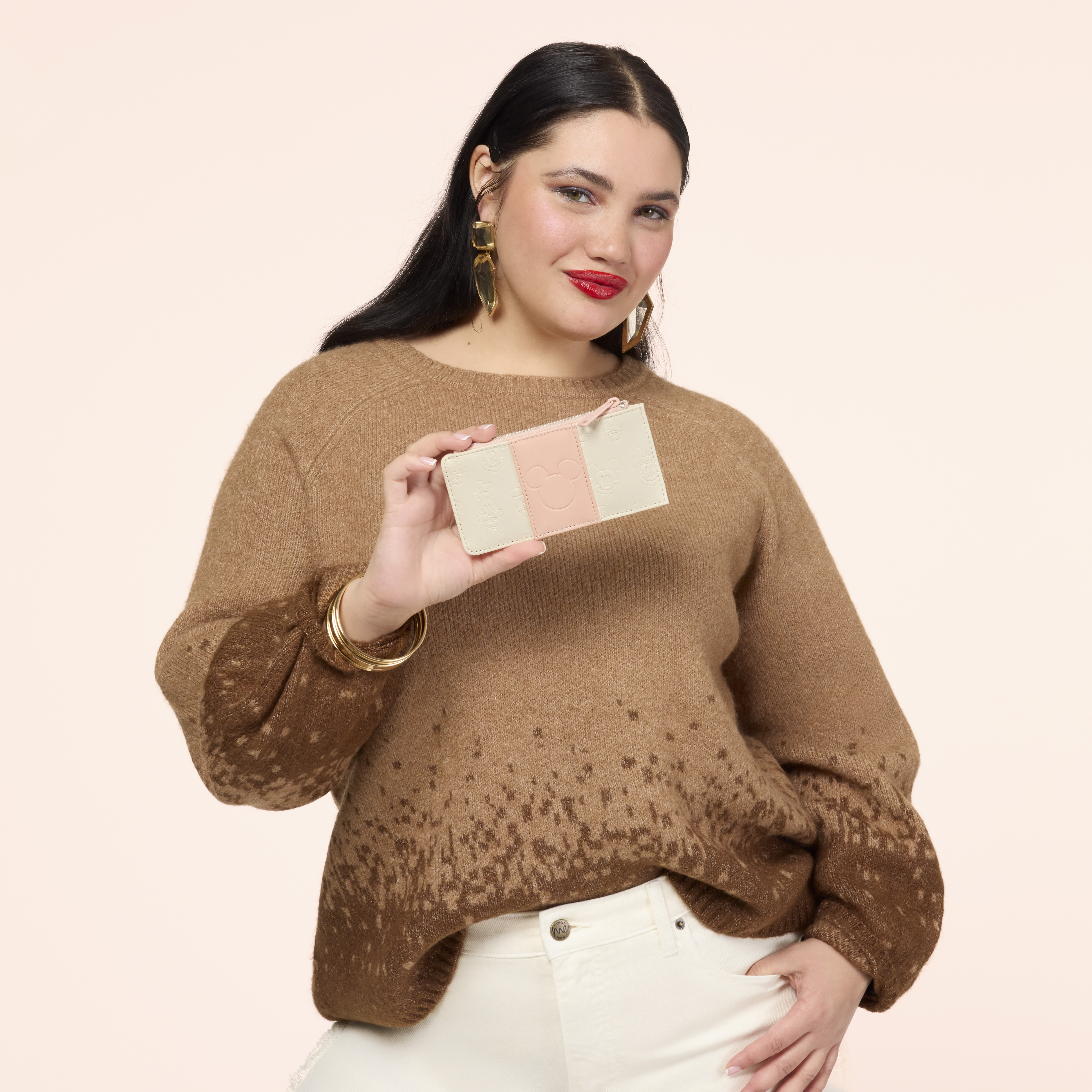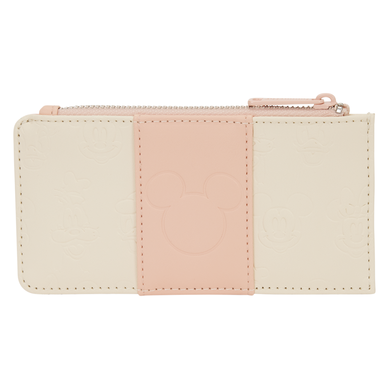 This card holder features debossed details of Mickey Mouse and his friends all over! A pink stripe goes down the center and features a Mickey Mouse silhouette! Turn it around to find four card slots to hold essentials! It's the perfect way to add some Disney magic to your ensemble!