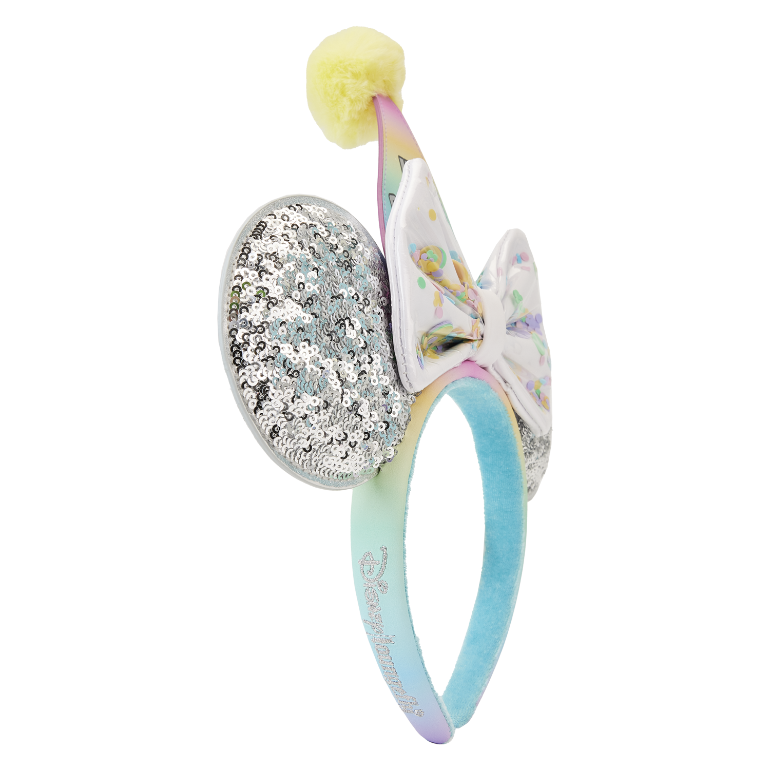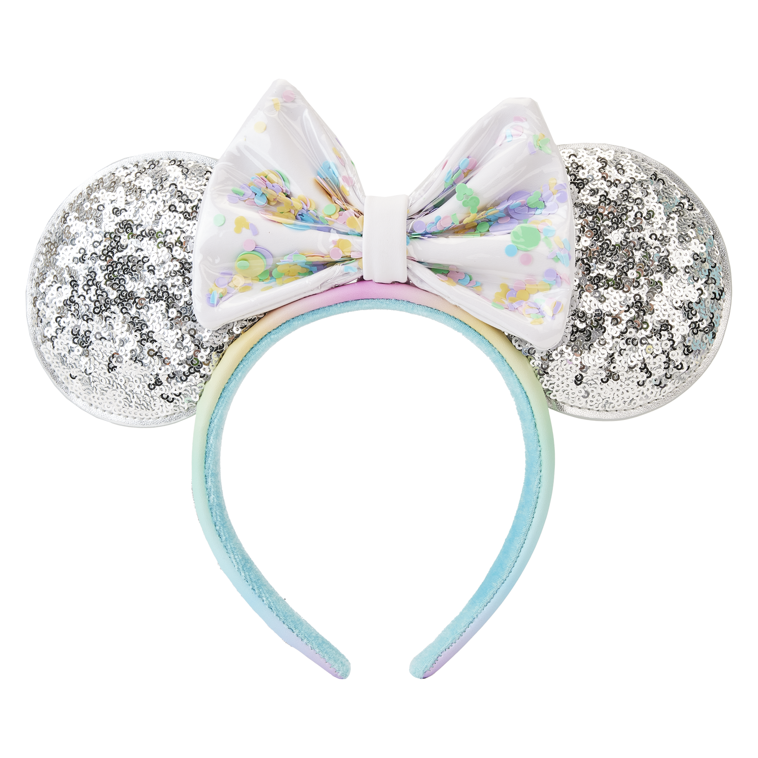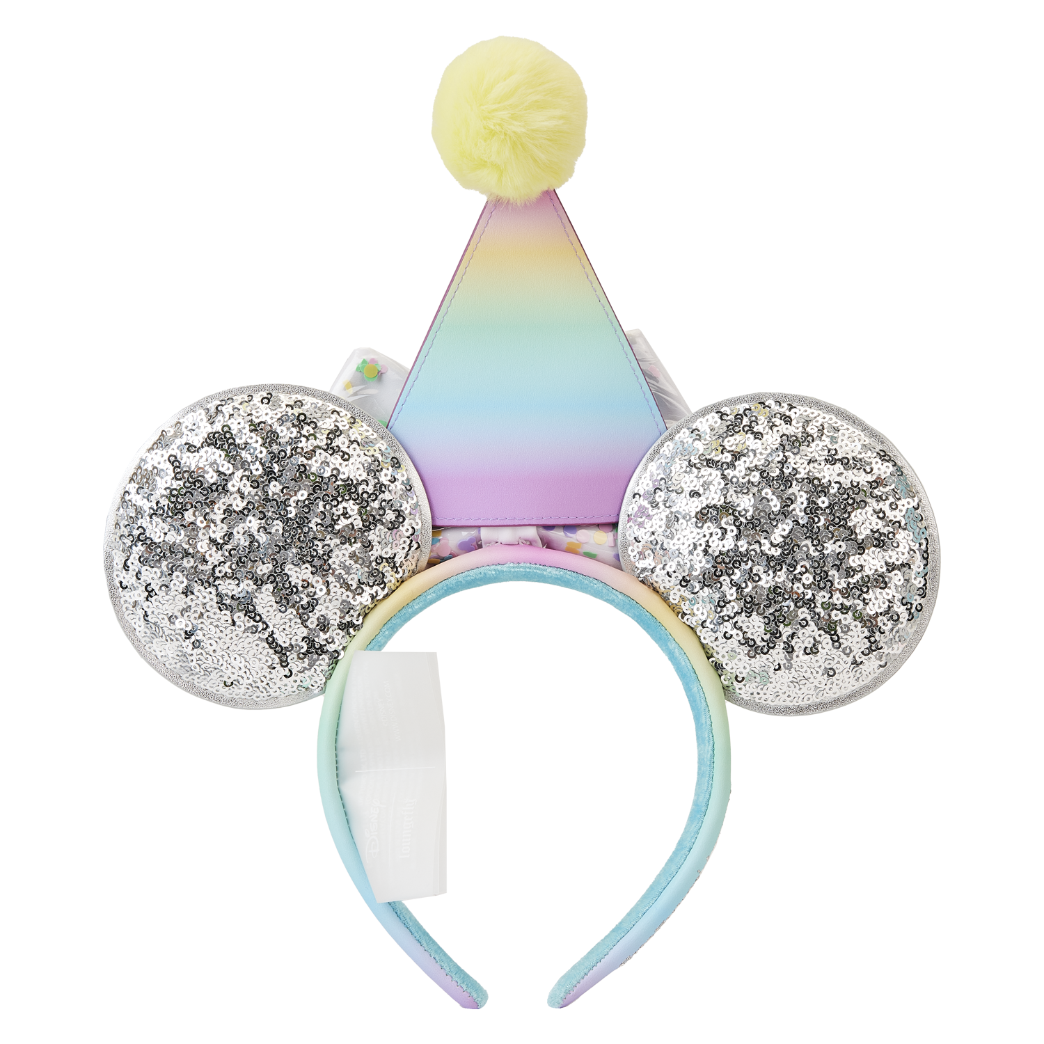 Have a slice of cake and celebrate with our Loungefly Disney Mickey Mouse and Friends Birthday Celebration Ear Headband. These silver sequined applique ears include a foil metallic party hat that reads, “It’s My Birthday.” A rainbow-patterned band complements the celebratory colors of the confetti on the PVC 3D bow. And, if you look closely, you might find some “hidden Mickeys.” This cute vegan leather headband also includes the Loungefly embroidery on the side. Bring the sparkle to any occasion with this fun accessory.