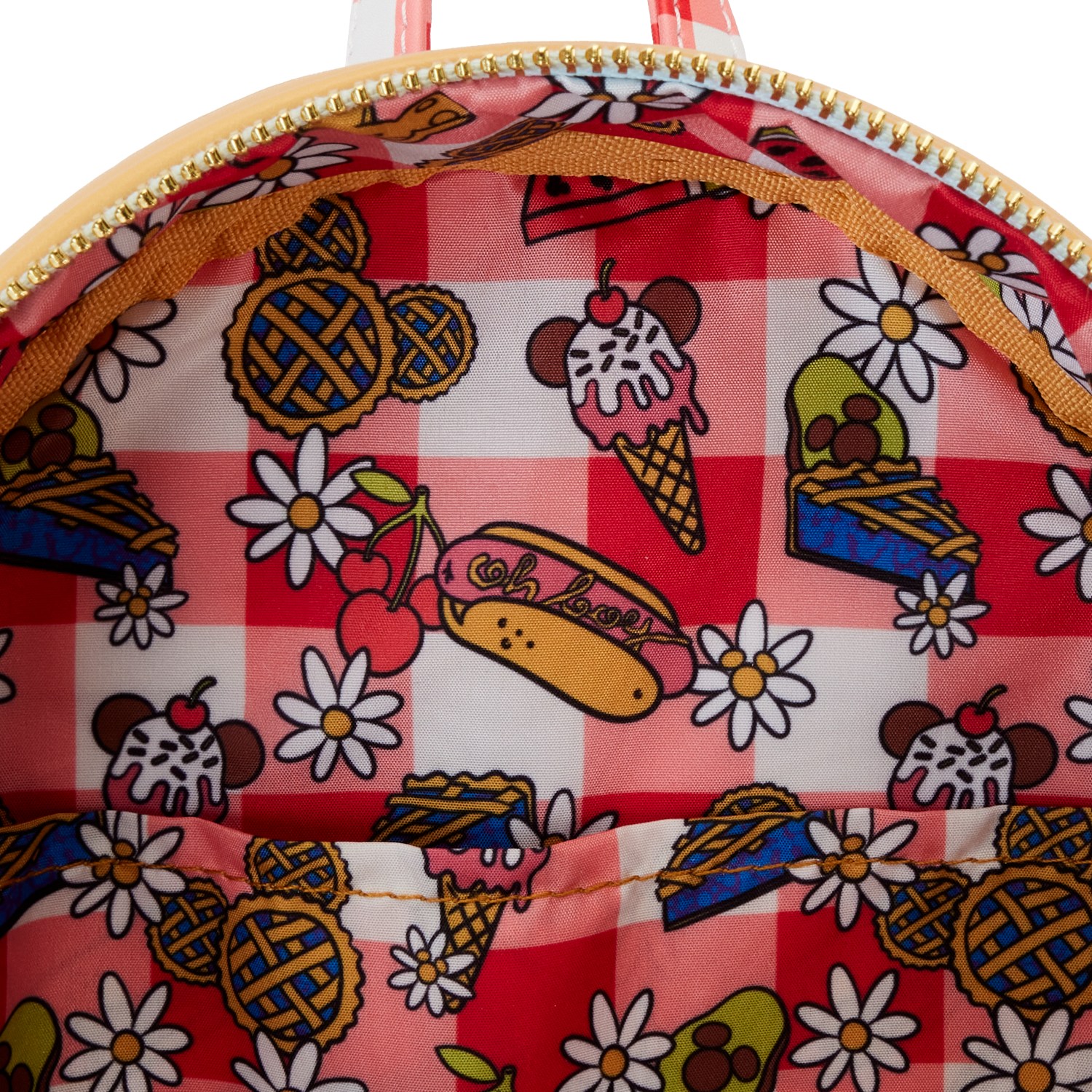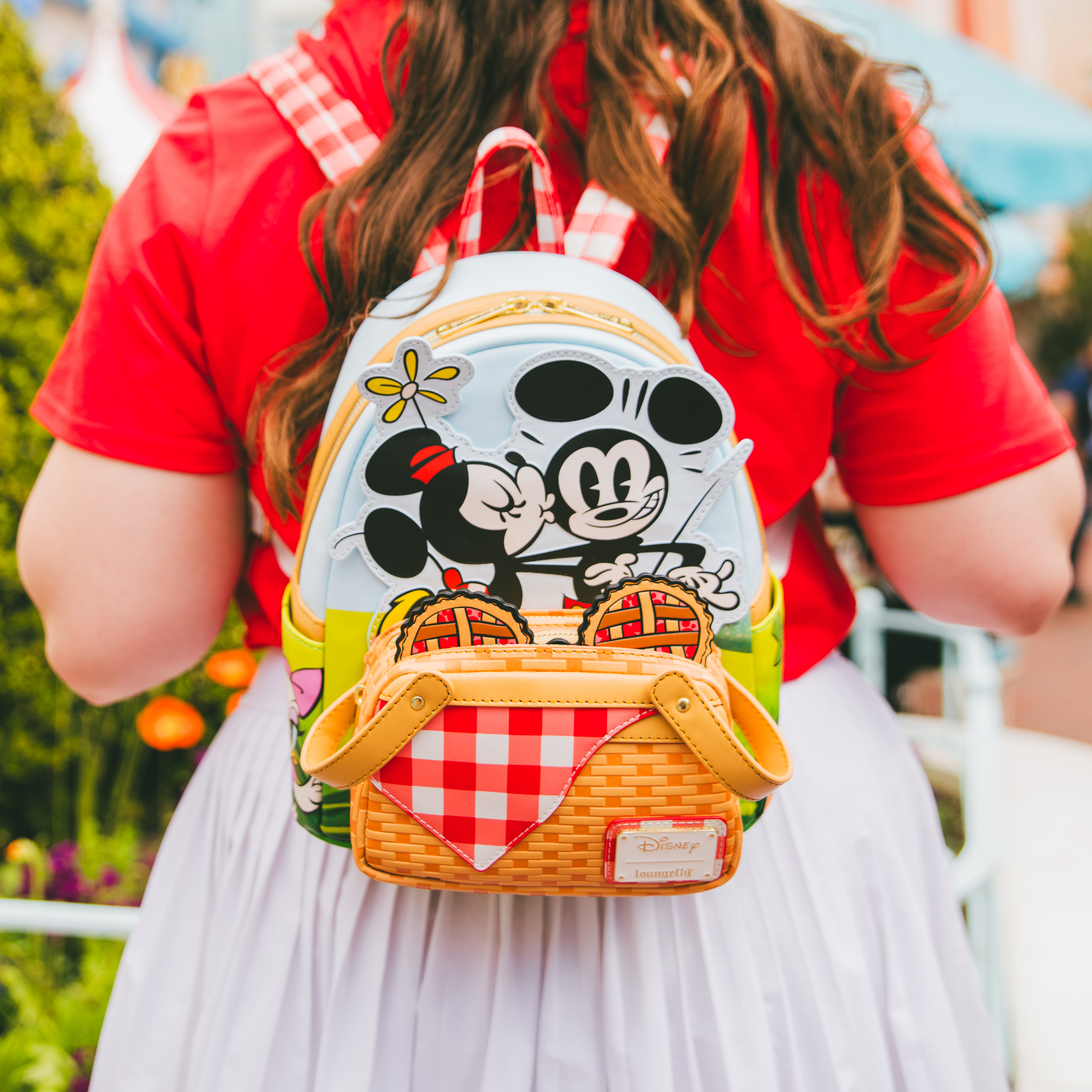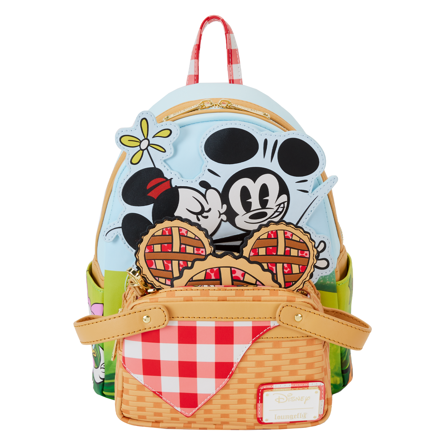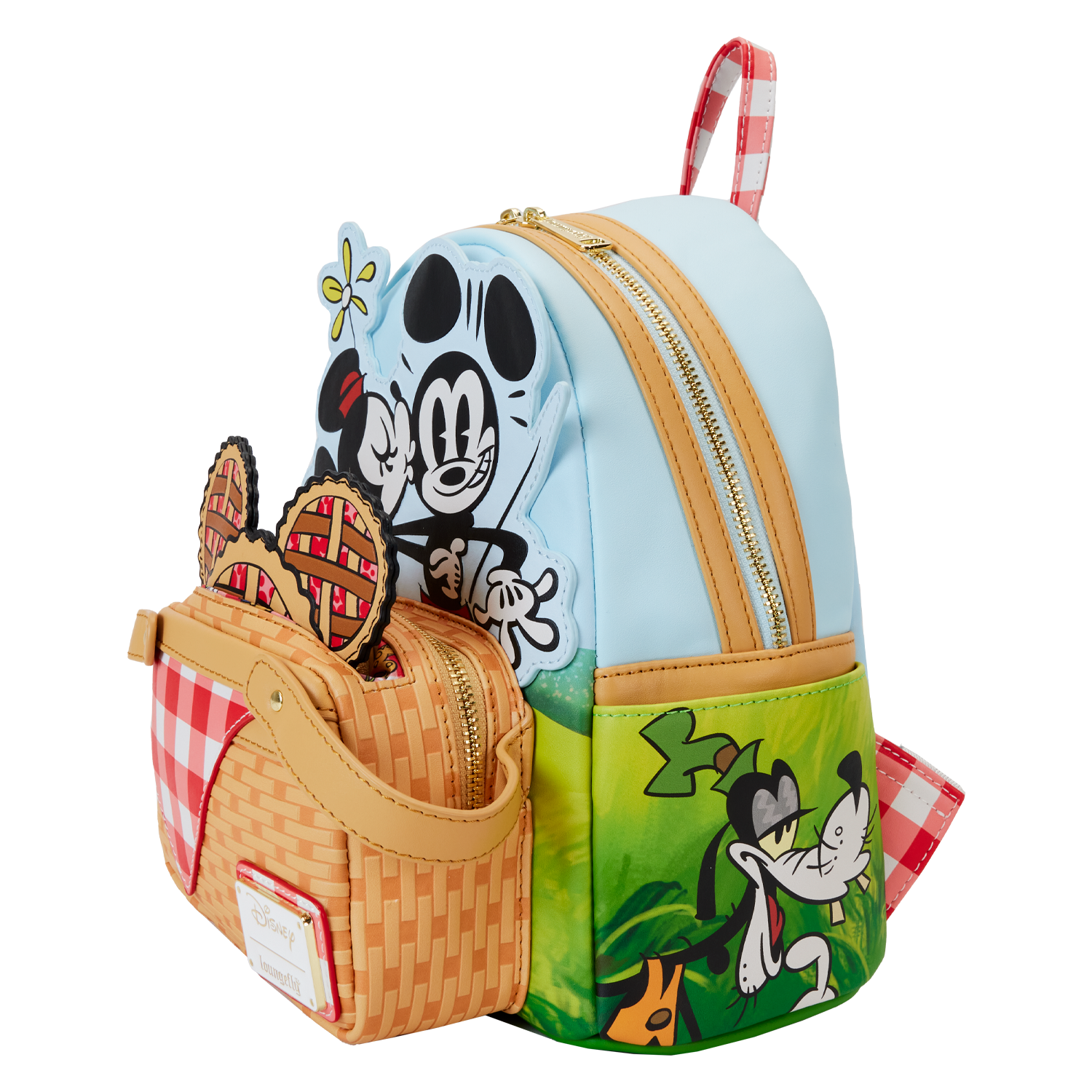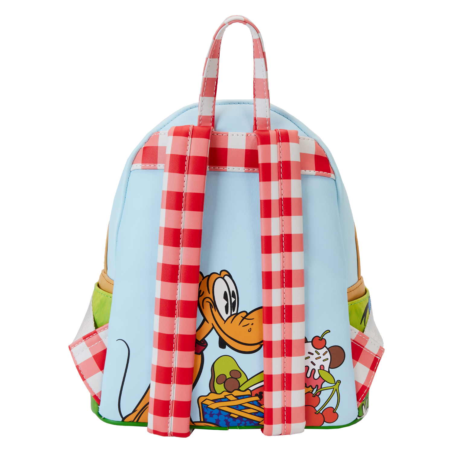 Life’s a picnic when you’re with your pals! Spend a sunny day in the countryside with the Loungefly Mickey and Friends Picnic Mini Backpack. On the front, a woven picnic basket takes shape on the bag’s zipper pocket. Look inside the basket to find a Mickey-shaped pie, which doubles as a strawberry-scented coin bag! Minnie and Mickey appear up above while Donald, Daisy, and Goofy join the fun on the bag’s side pockets. On the back, gingham shoulder straps accompany Pluto as he sizes up a tasty feast. This mini backpack makes a stylish addition to any outing and has plenty of room to pack your picnic essentials.