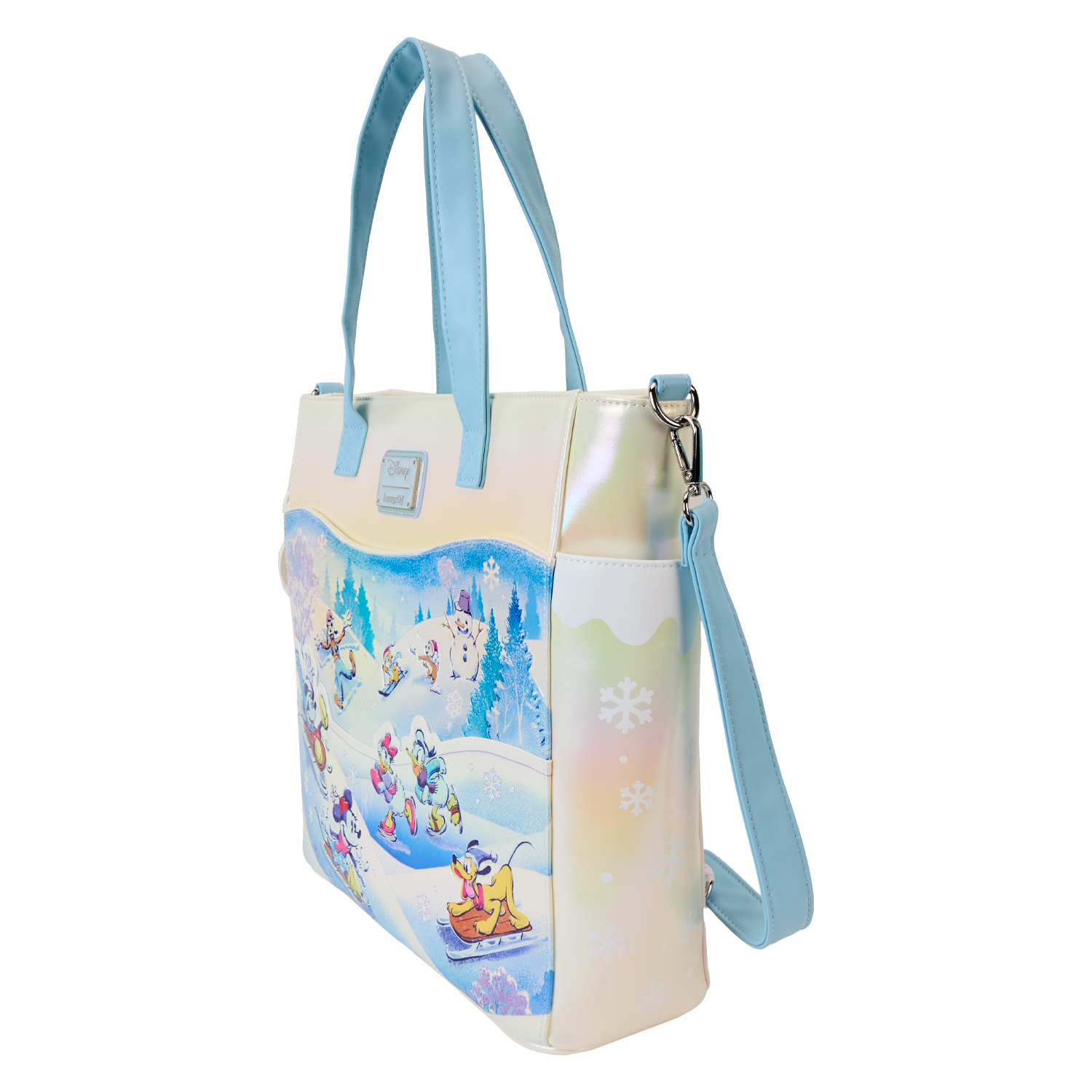 There’s nothing better than a snow day! Join Mickey and his pals as they explore the wonders of winter. Frosted with iridescent details, this convertible tote bag uses an icy colorway for the characters we know and love. With backpack straps, a shoulder strap, and handles, this bag can be worn however you choose! This accessory has plenty of room to store your belongings and will keep Disney fans looking stylish all season long.