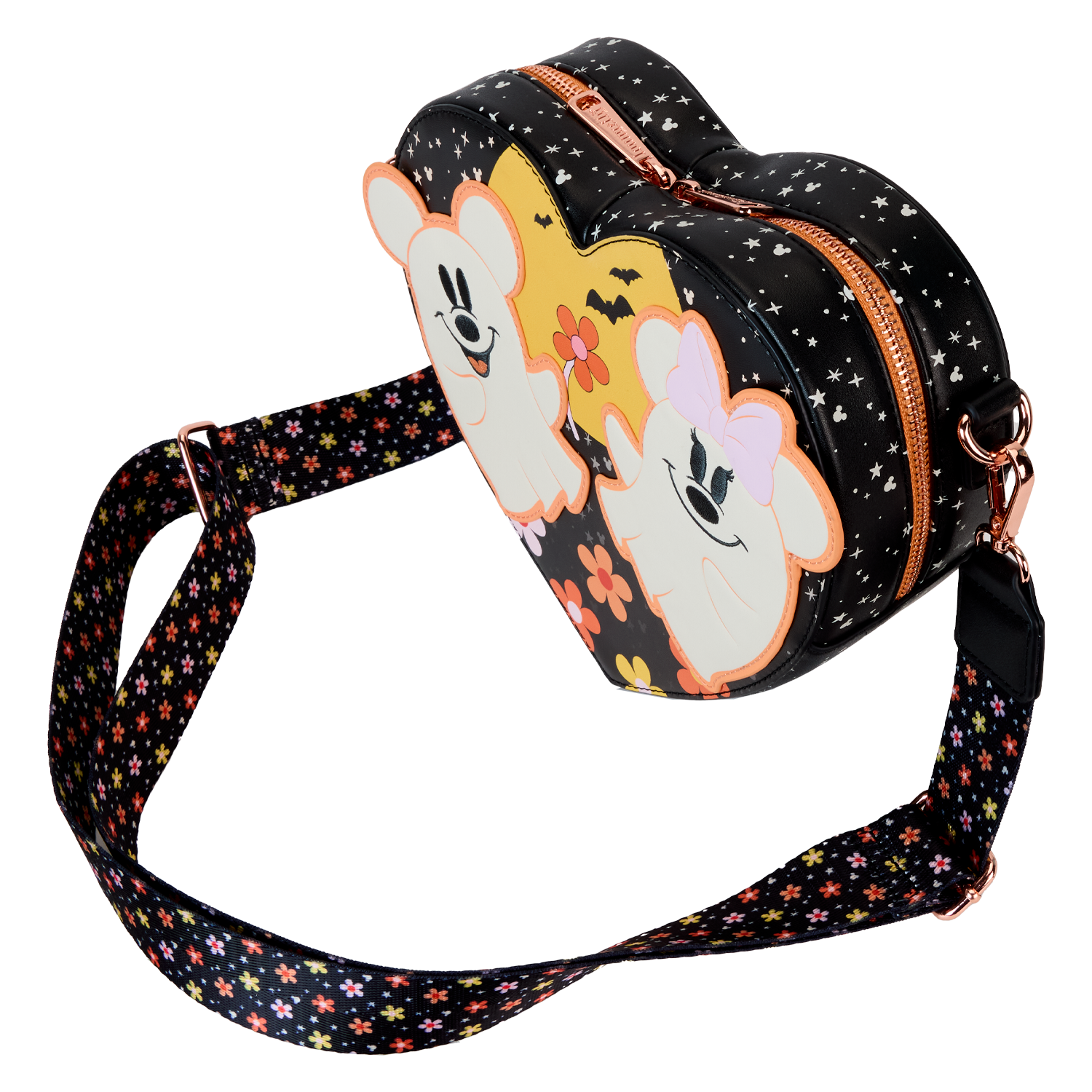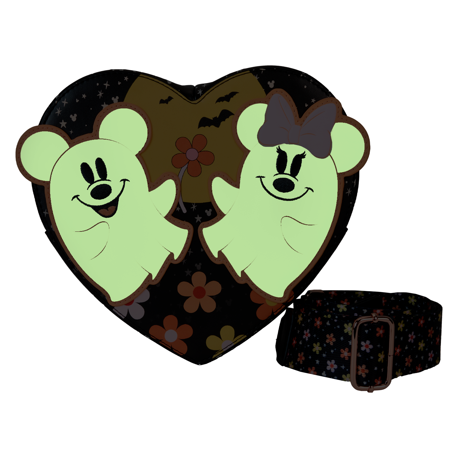 Mickey & Minnie Floral Ghost Figural Heart Glow Crossbody Bag