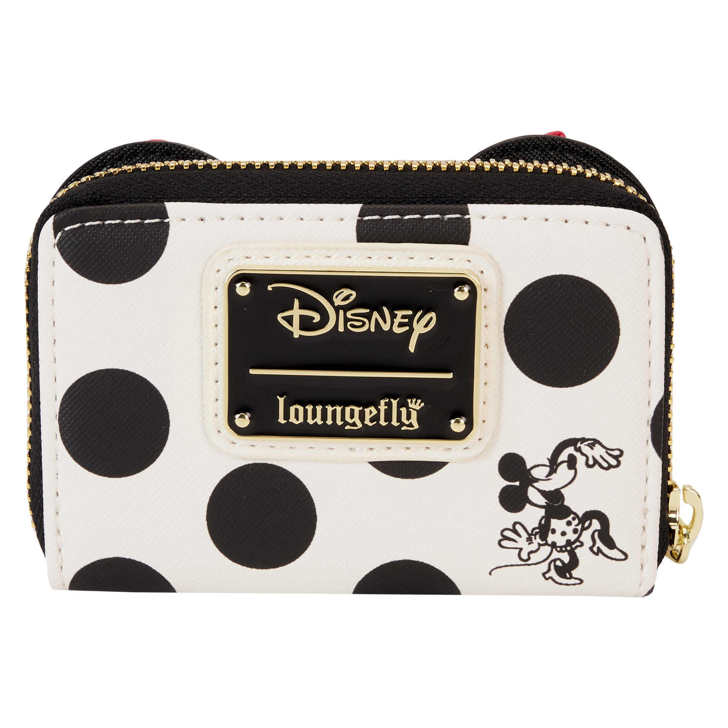 Our dotted line has a signature touch! The Loungefly Disney Minnie Mouse Rocks the Dots Accordion Card Holder is a fresh and fabulous take on a classic style. The all-over-print of black dots against a white background adds a fashionable touch, while the 3D bow in red adds a splash of color. Ears, characteristic of Disney’s Minnie Mouse, rise up over the top in applique detail. On the back, you’ll find an embossed, vintage print of Minnie Mouse in black and white, and she’s dancing! Inside, you’ll find plenty of slots for securing and organizing important cards. Arrive on the dot and in style wherever you go.