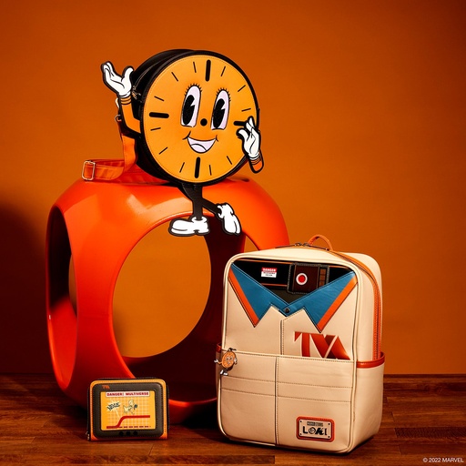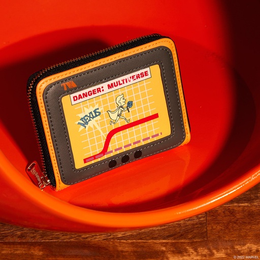 “Hey, y’all!” The Loungefly Loki TVA Miss Minutes Zip Around Wallet is here to catch you up on the most recent happenings at the Time Variance Authority. The front of this accessory takes the form of a retro television screen, where an infographic describes the danger of straying from the Sacred Timeline. As a cartoon illustration creates a nexus event, the words, “DANGER: MULTIVERSE” appear above. The back of the wallet features the TVA’s cheery animated mascot, Miss Minutes, displayed against an orange background. Her name appears above the words, “For all time. Always.” With four slots for holding cards and a clear slot for holding ID, this timeless accessory has room to store all your time-traveling essentials.